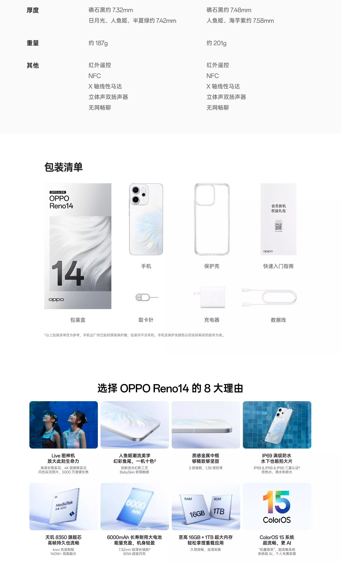 其他外觀參數(shù):厚度: 約7.42mm(人魚(yú)姬,半夏綠) 約7.32mm(礁石黑)
