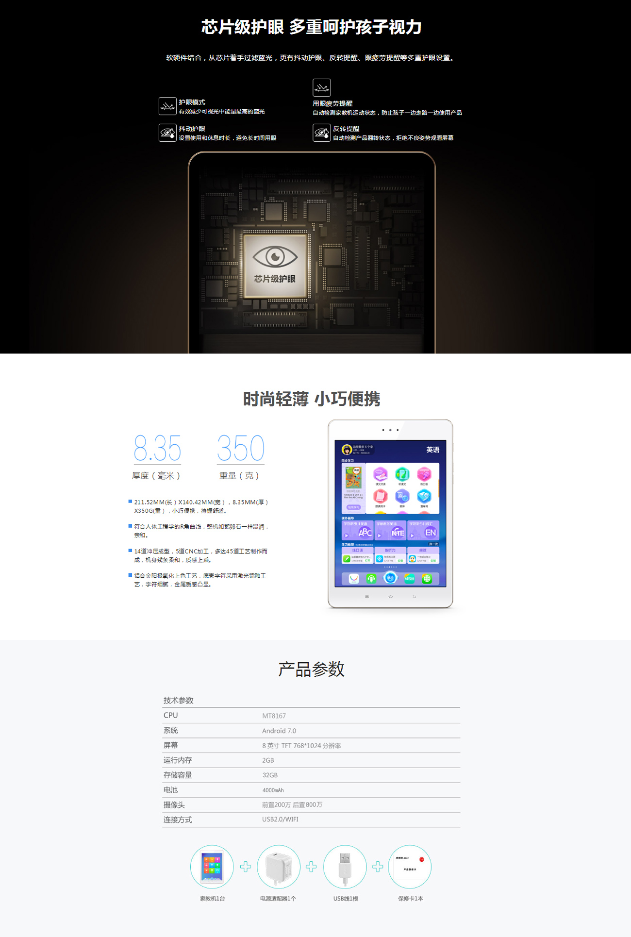 其他功能:軟硬件結(jié)合,從芯片著手過濾藍光,更有抖動護眼、翻轉(zhuǎn)提醒、眼疲勞提醒等多重護眼設(shè)置