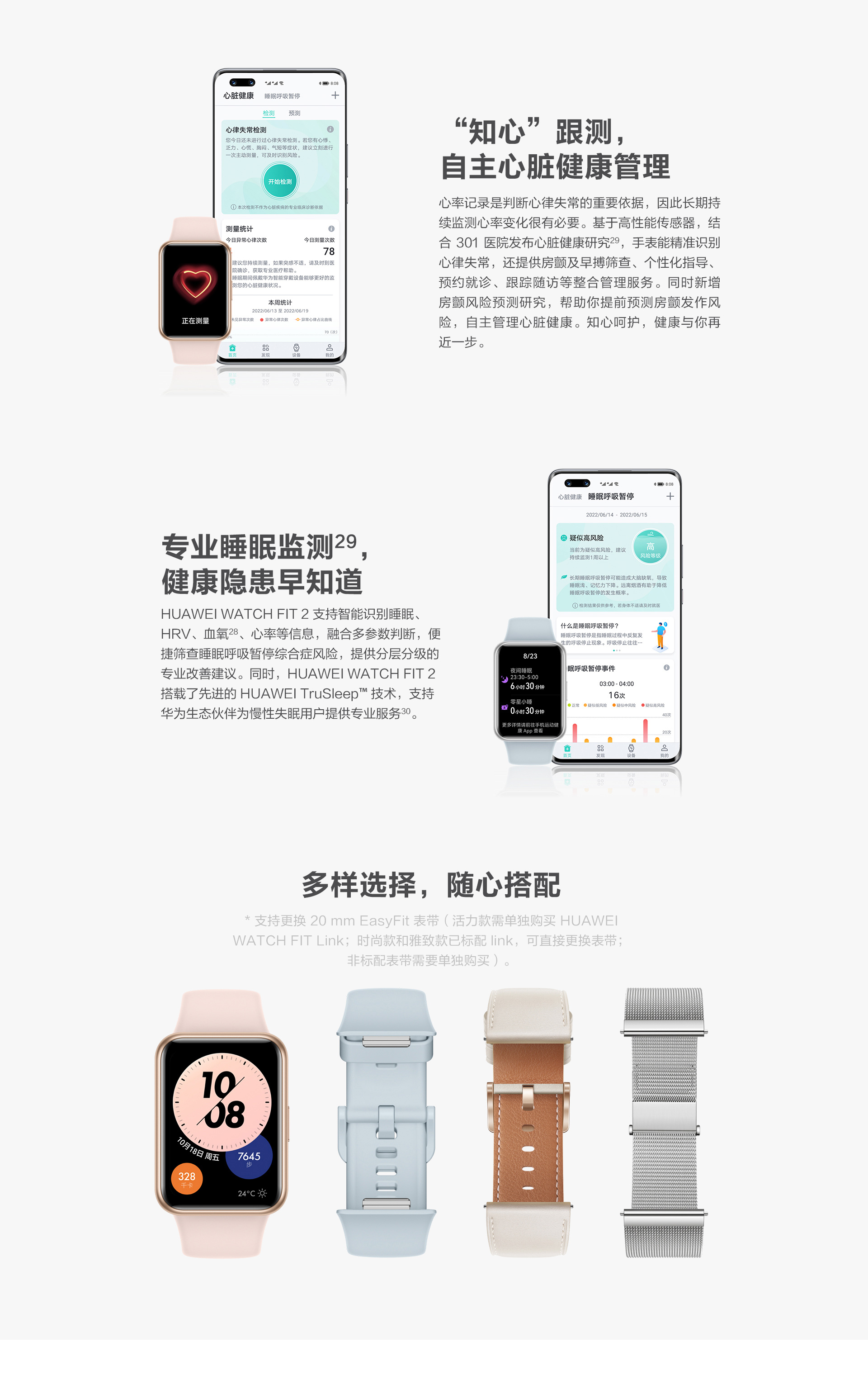 心率監(jiān)測:支持,HUAWEI TruSeen5.0心率監(jiān)測技術(shù)、心臟健康研究、睡眠呼吸暫停研究
