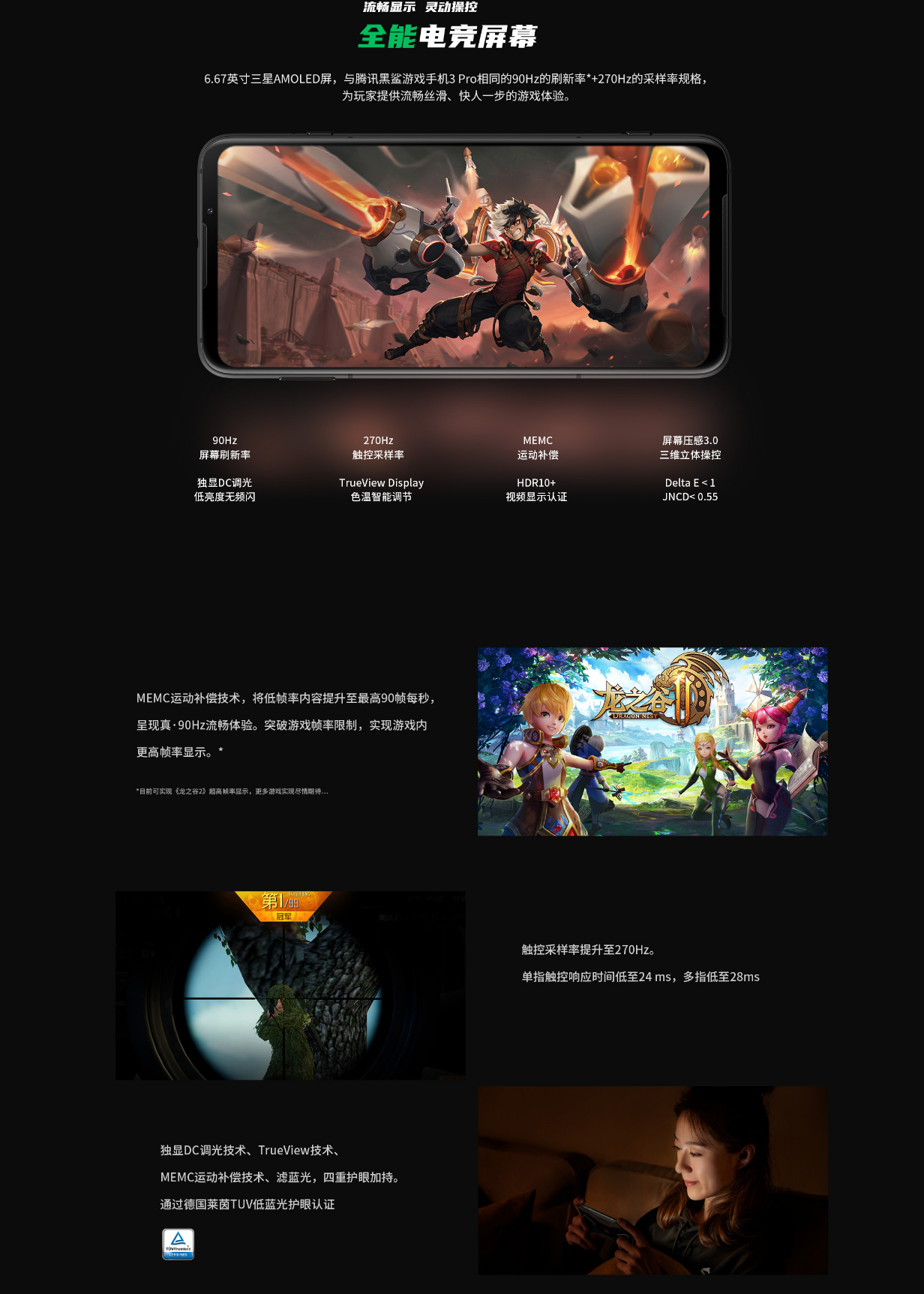 其他屏幕參數(shù):支持護(hù)眼模式,支持MEMC智能運動補償技術(shù),支持圖像增強,DCI-P3:110% NTSC