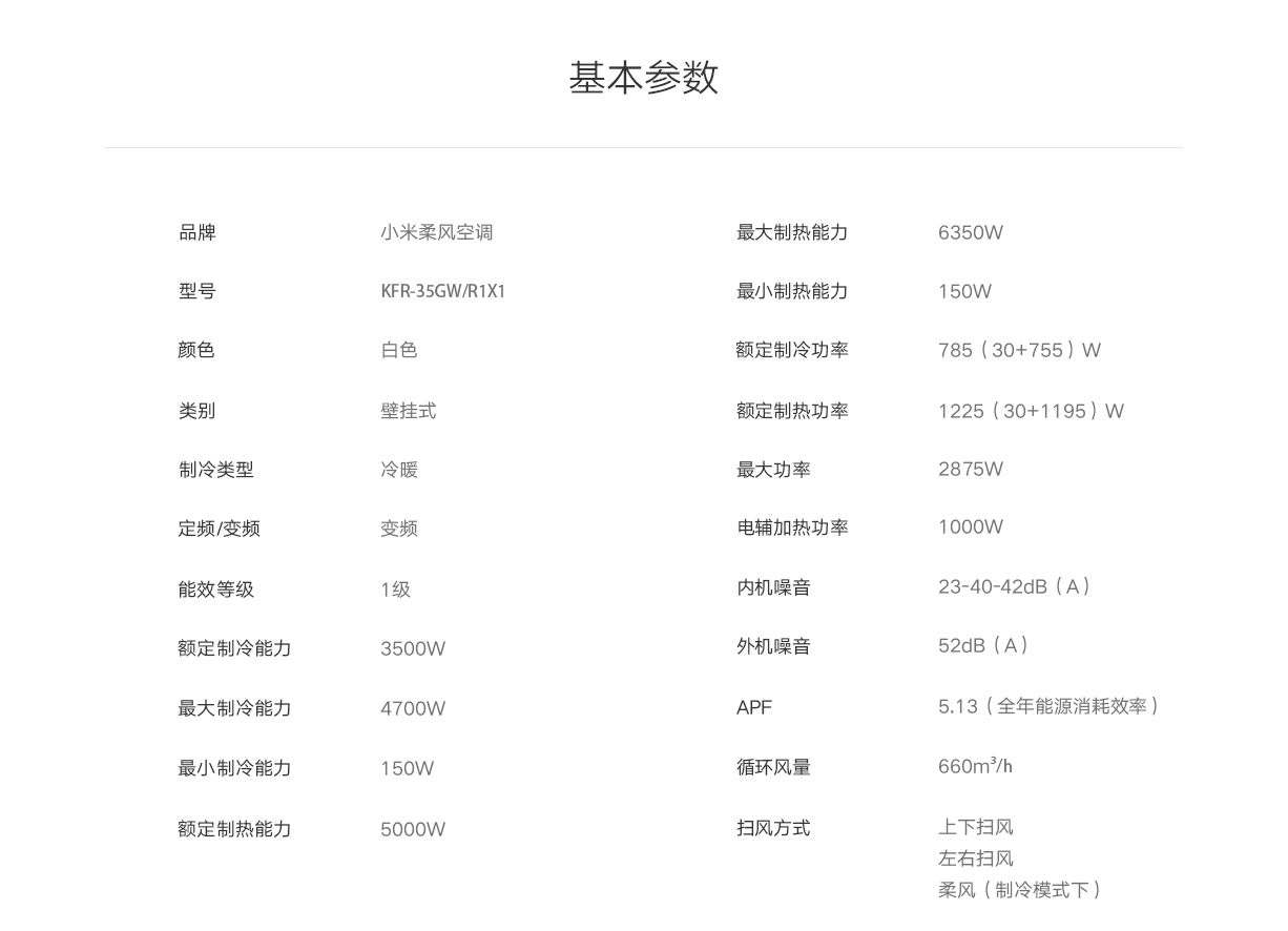 柔風(fēng) 小米新1級(jí)空調(diào) 1.5匹 (掛式)