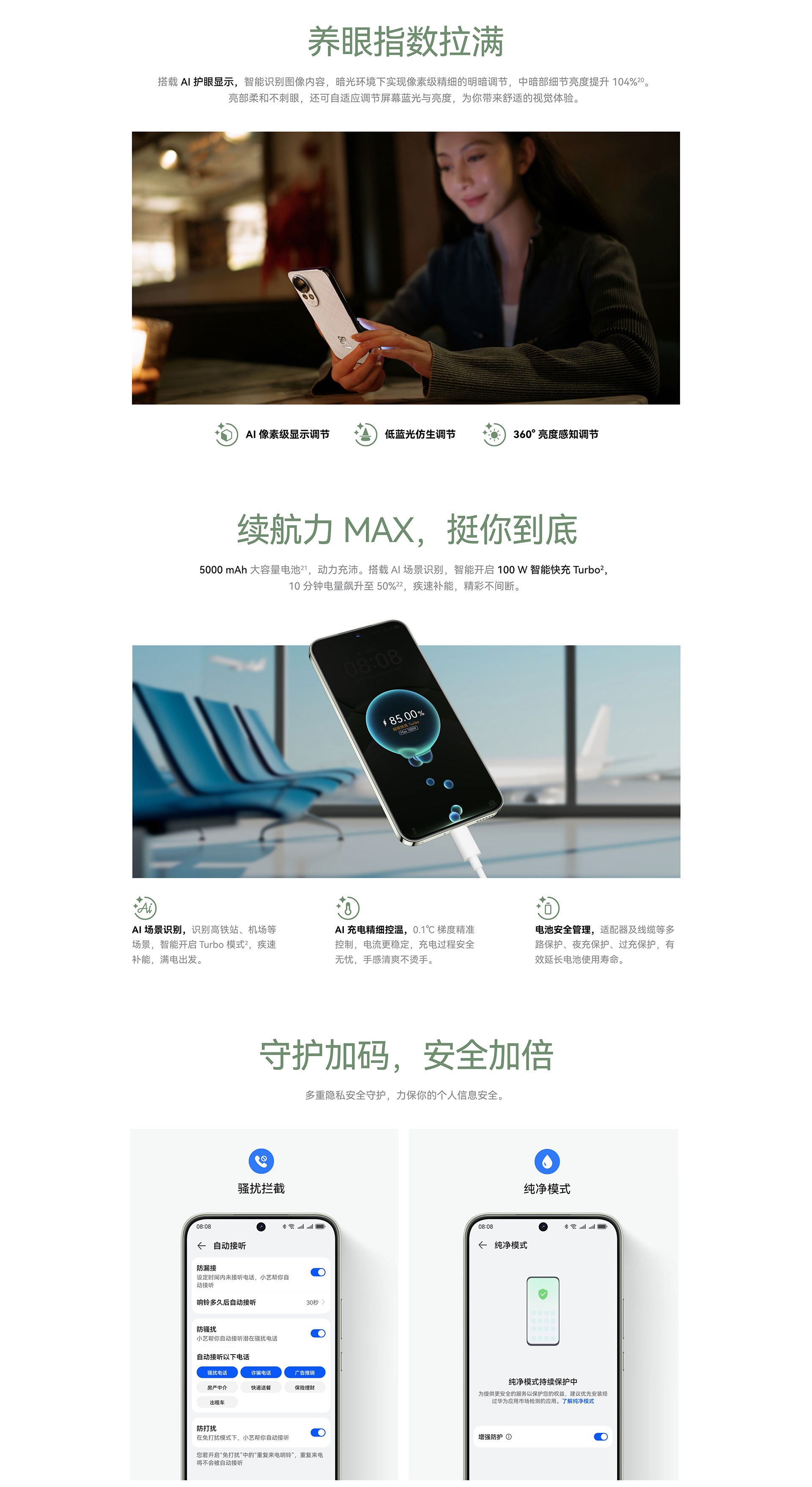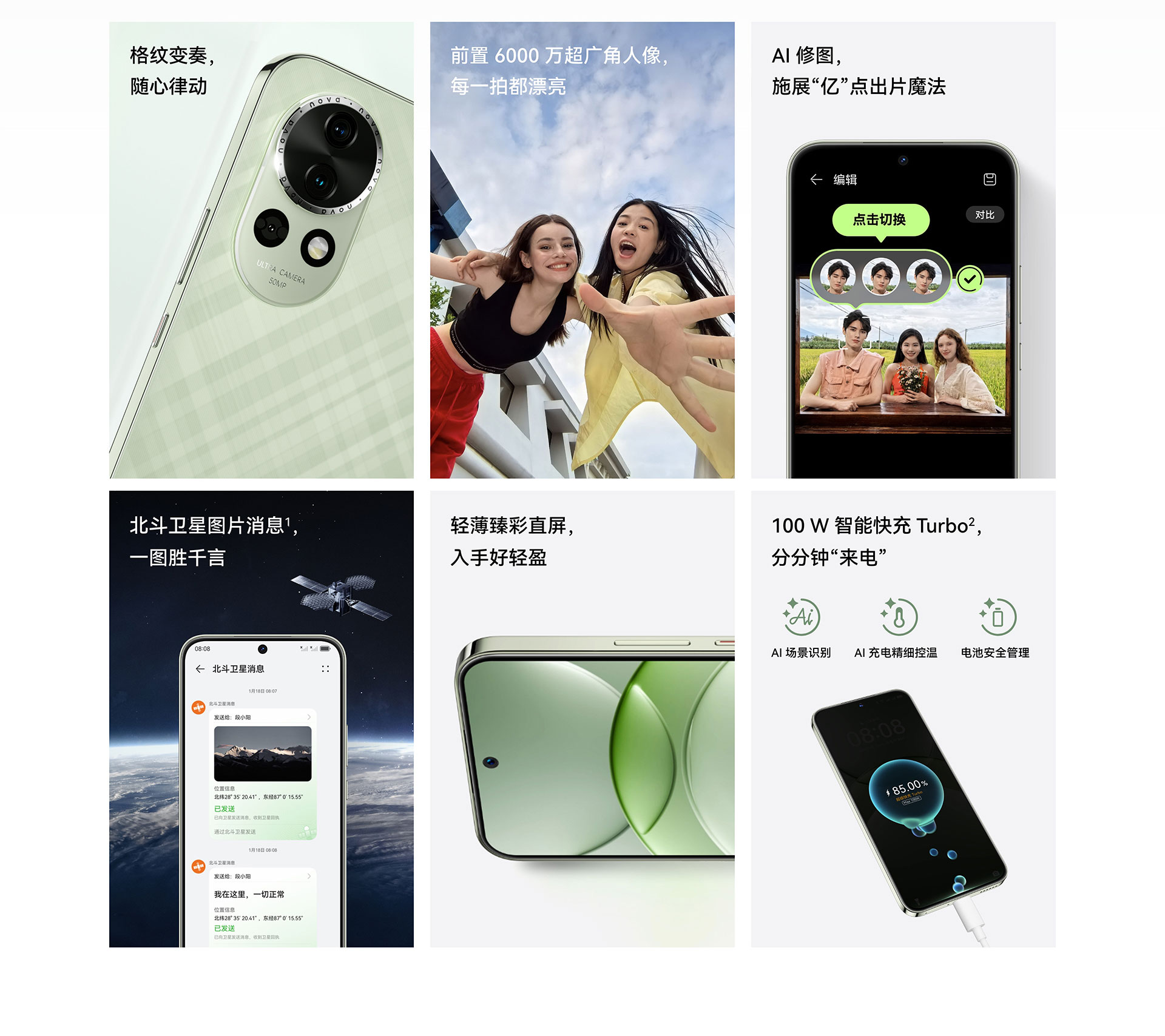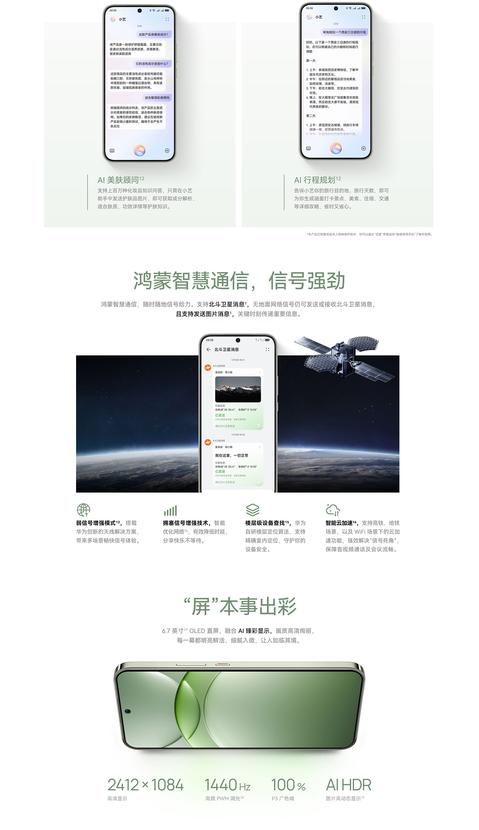 其他功能:雙向北斗衛(wèi)星消息*、端云加速、最佳表情、AI消除、心情主題、AI護(hù)眼、人像主題、智慧摳圖、中轉(zhuǎn)站、低電量應(yīng)急模式、紅外遙控