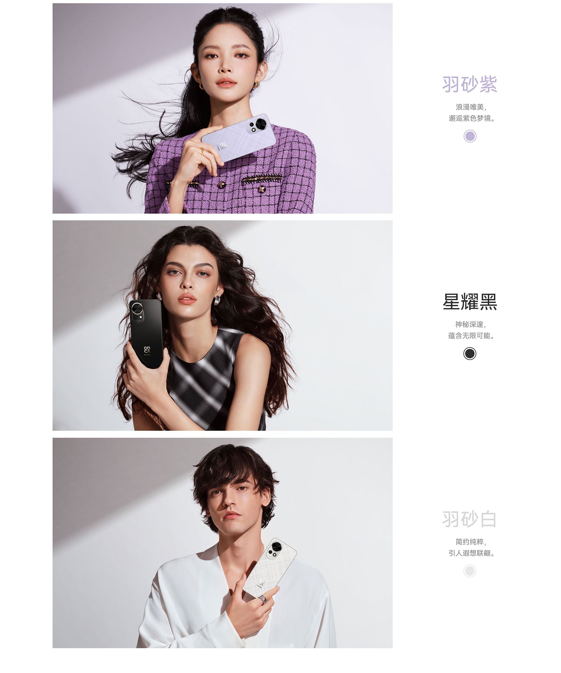 機(jī)身顏色:星耀黑, 洛登綠, 羽砂紫, 羽砂白