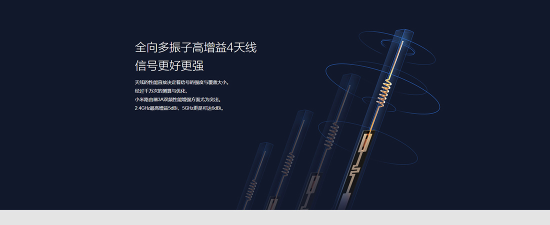 天線增益:2.4G最大增益5dBi 2根,5G最大增益6dBi 2根