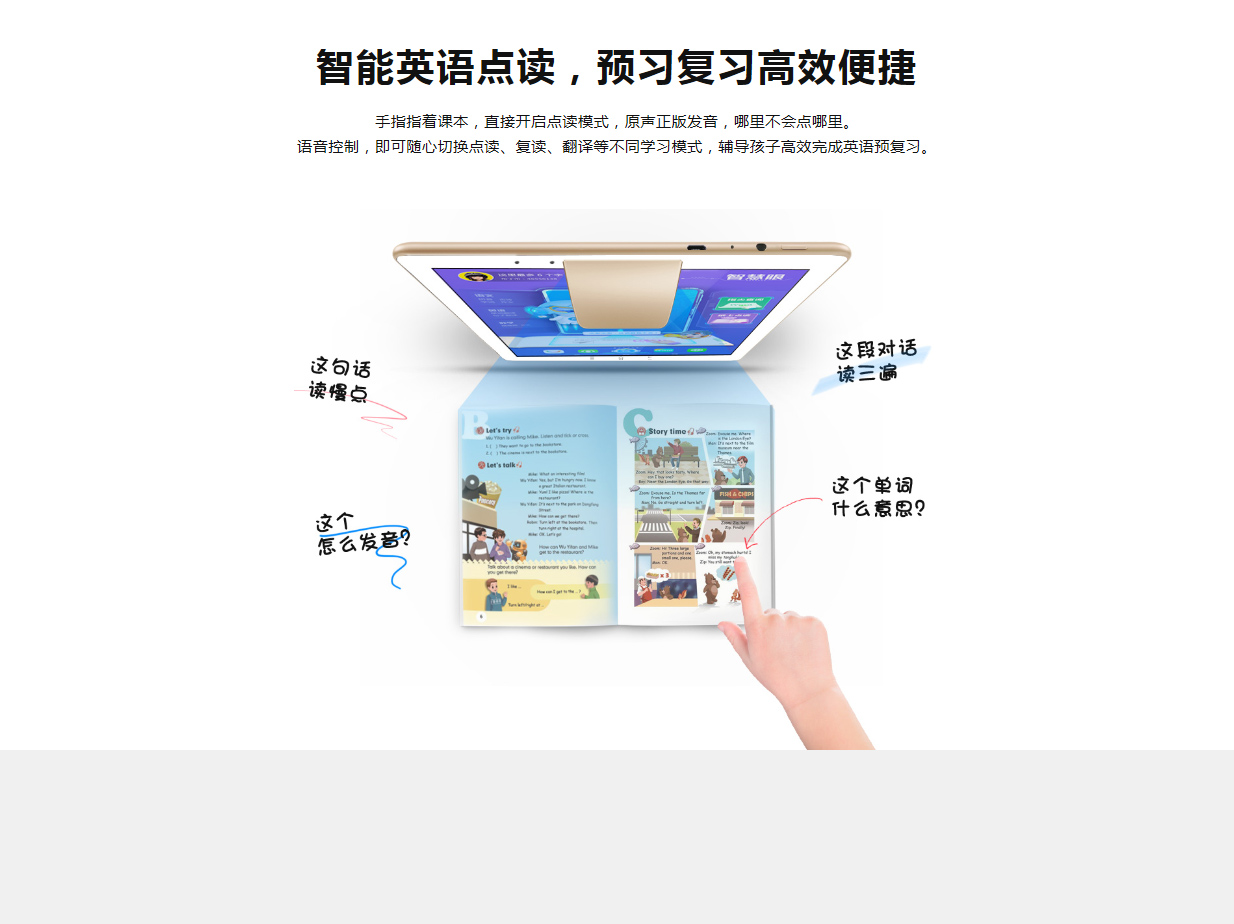 一點(diǎn)一問(wèn) / 智能輔導(dǎo) / 護(hù)眼模式 / 智能聽(tīng)寫(xiě) / 距離提示