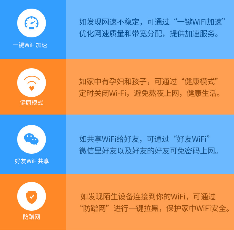 無線安全:WPA-PSK/WPA-PSK2加密,無線訪問控制(黑白名單),SSID隱藏,智能防蹭網(wǎng)