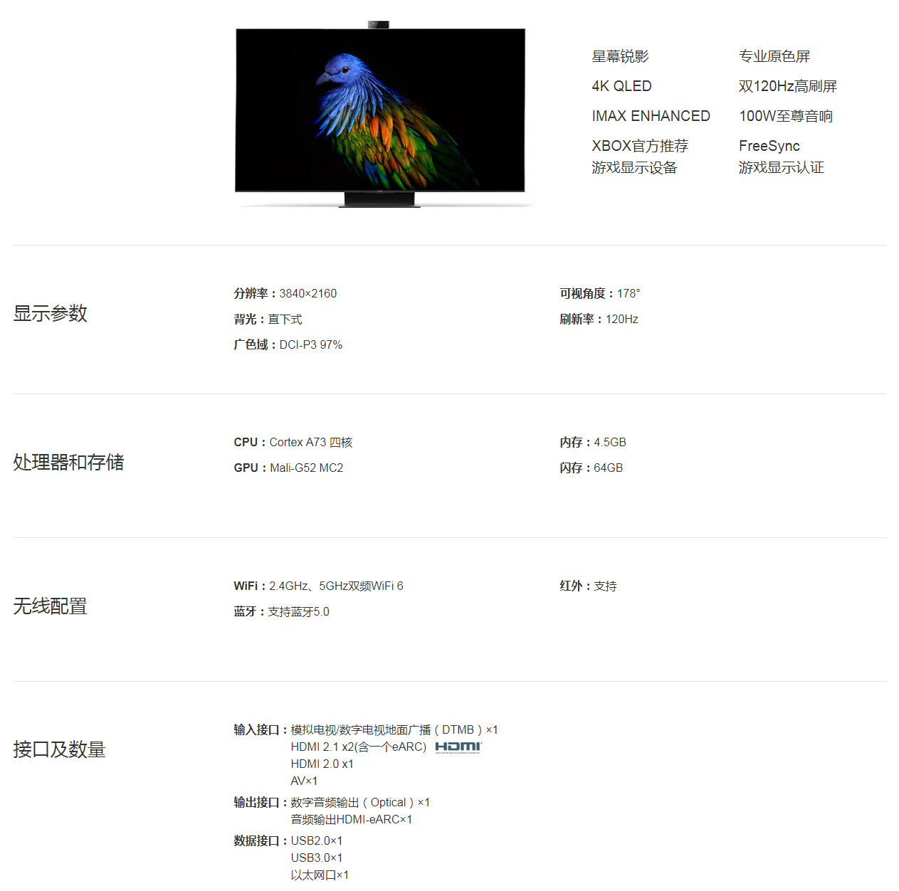 星幕銳影 / 百級分區(qū)背光系統(tǒng) / 4KQLED 雙120Hz高刷屏 / 4800萬可升降雙攝像頭