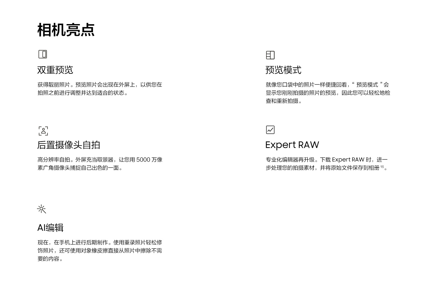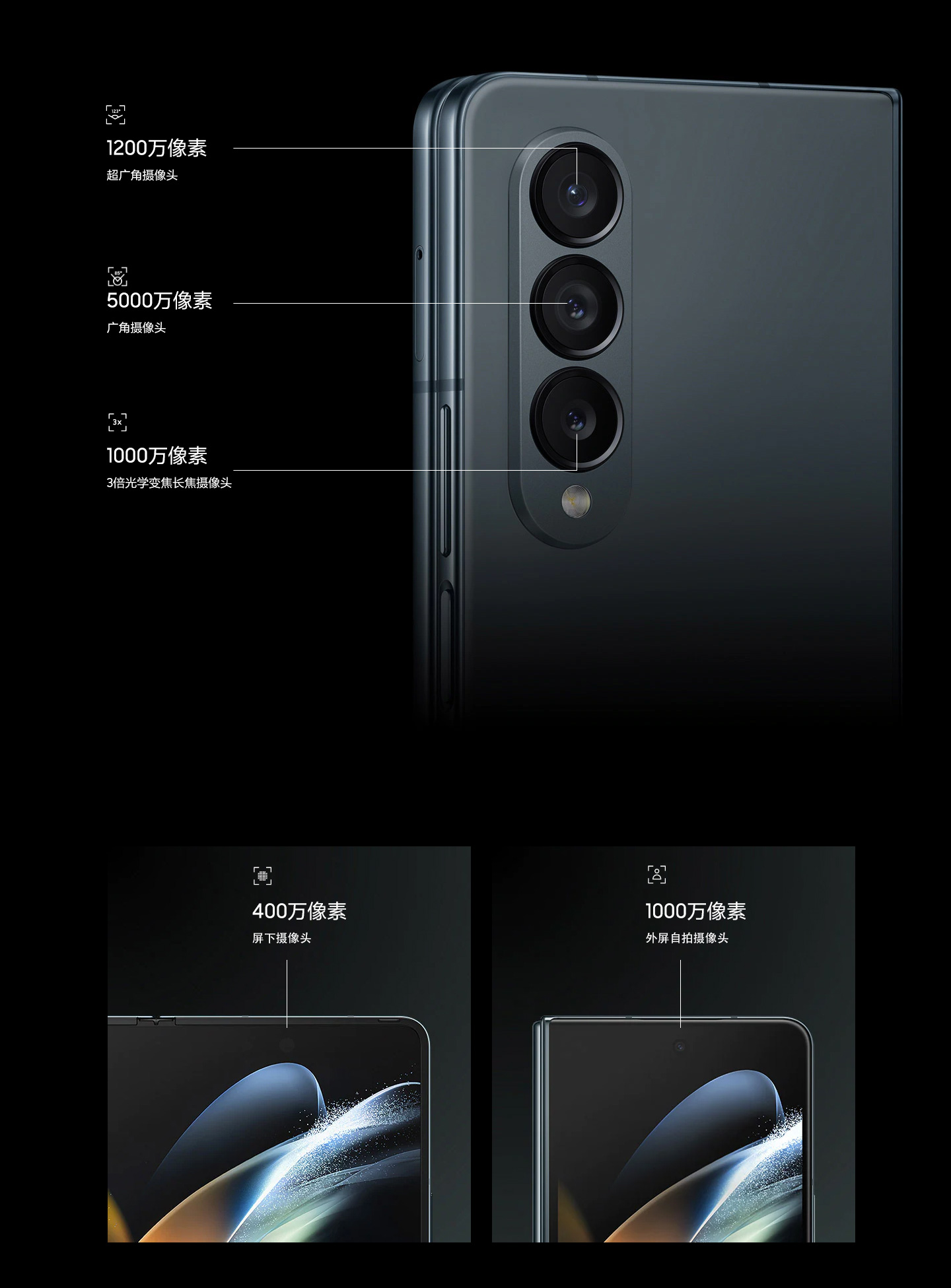前置攝像頭1:1000萬像素(內(nèi)屏)+400萬像素(外屏)