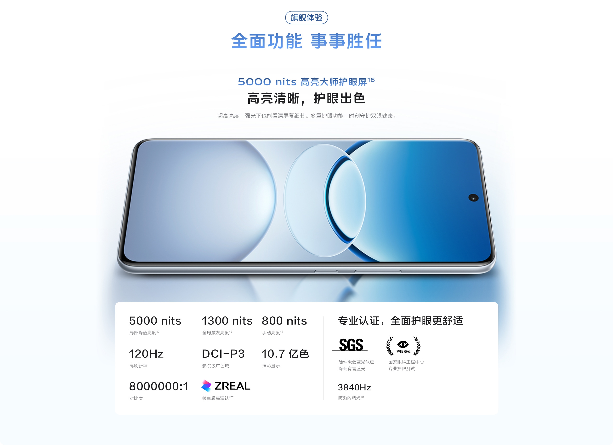屏幕亮度:全局激發(fā)亮度:1000nits 局部峰值亮度:1300nits