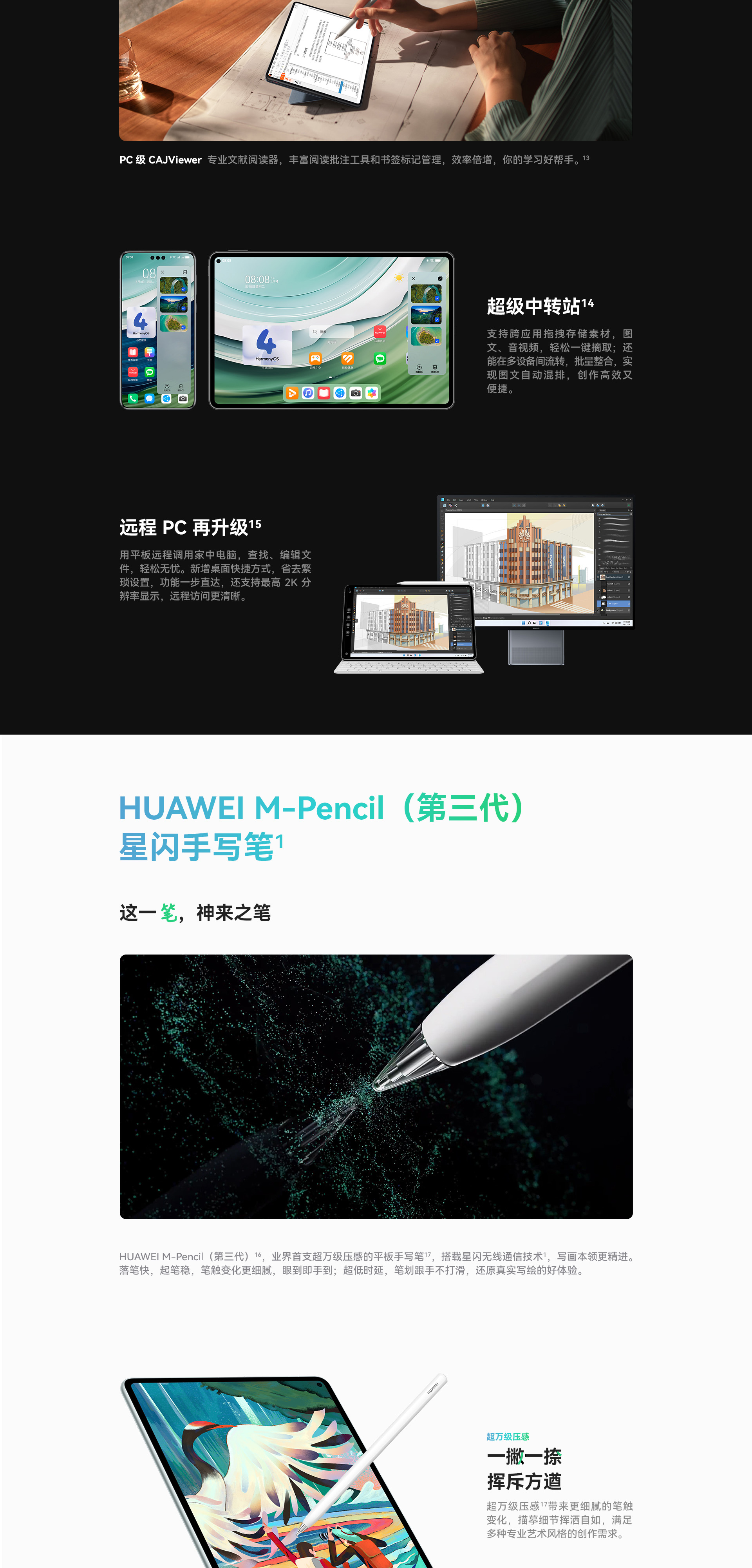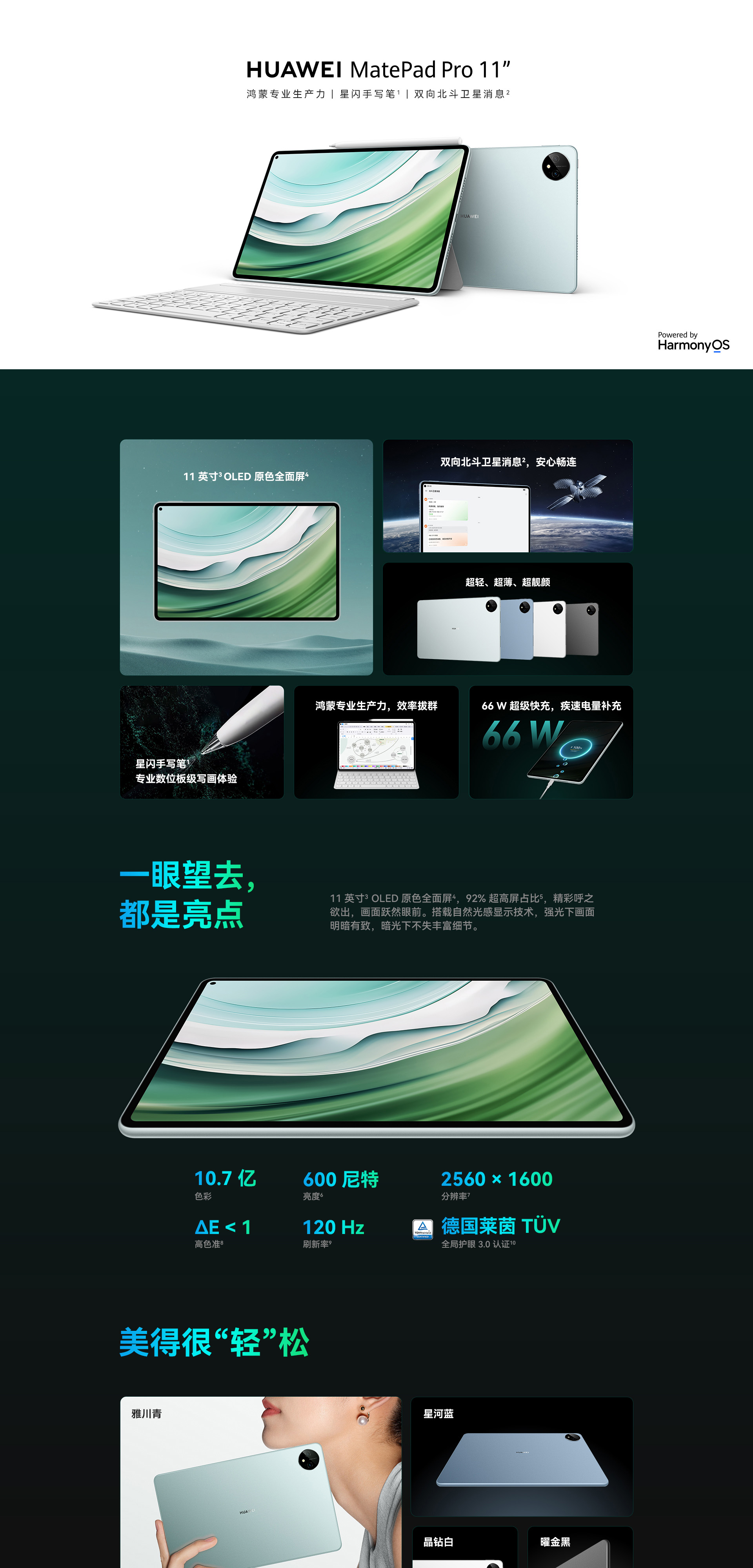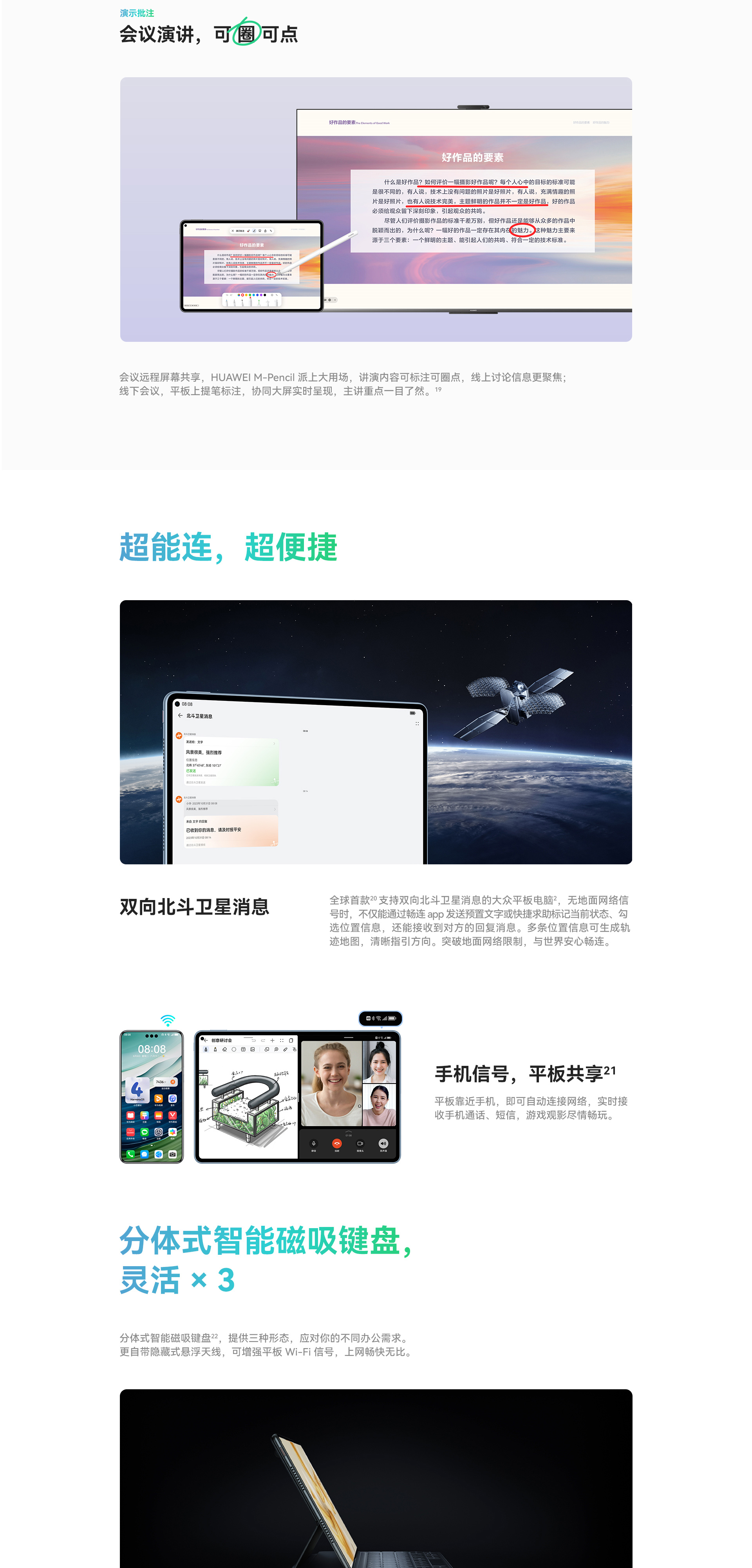 可搭配星閃手寫筆 / 雙向北斗衛(wèi)星消息 / 移動通信共享 / 專屬PC級應(yīng)用軟件 / 輕薄長續(xù)航 / 鴻蒙專業(yè)生產(chǎn)力