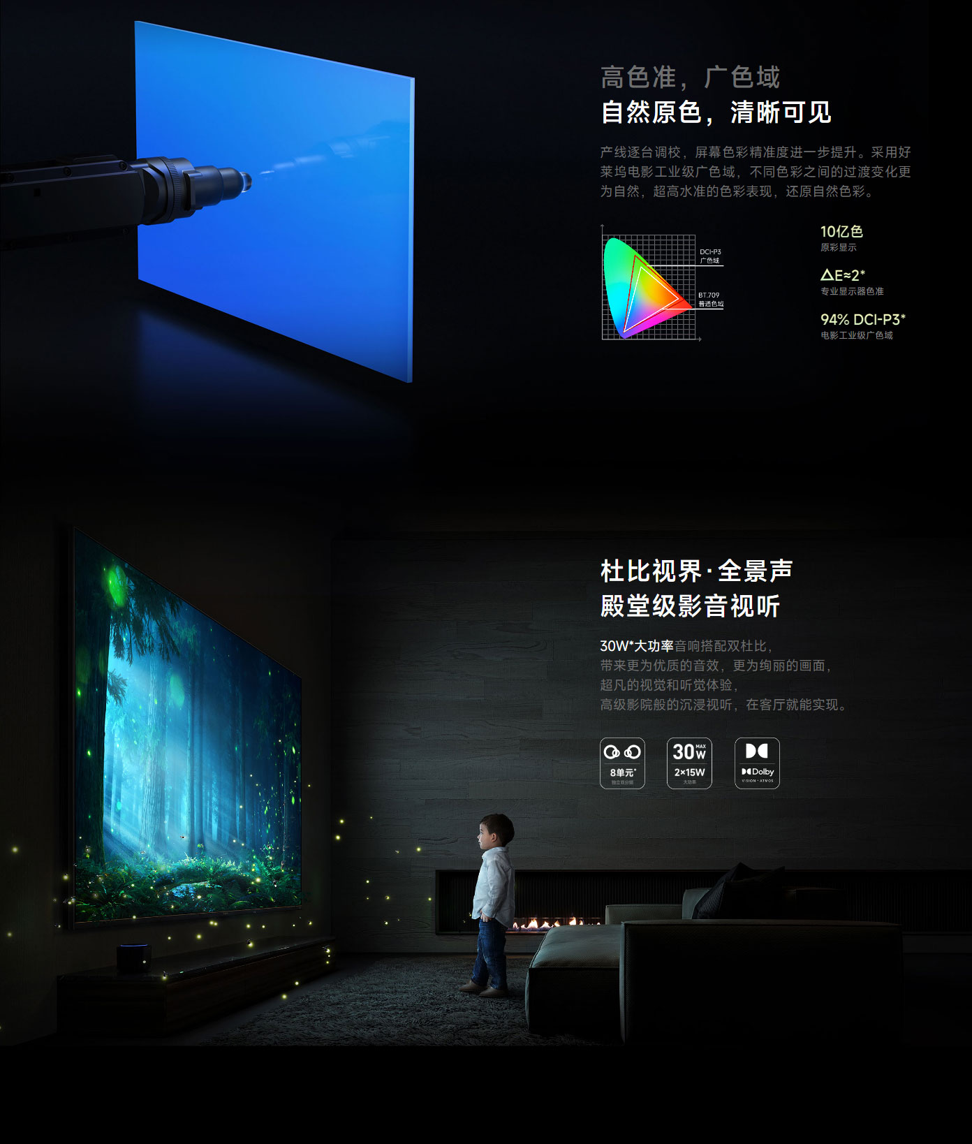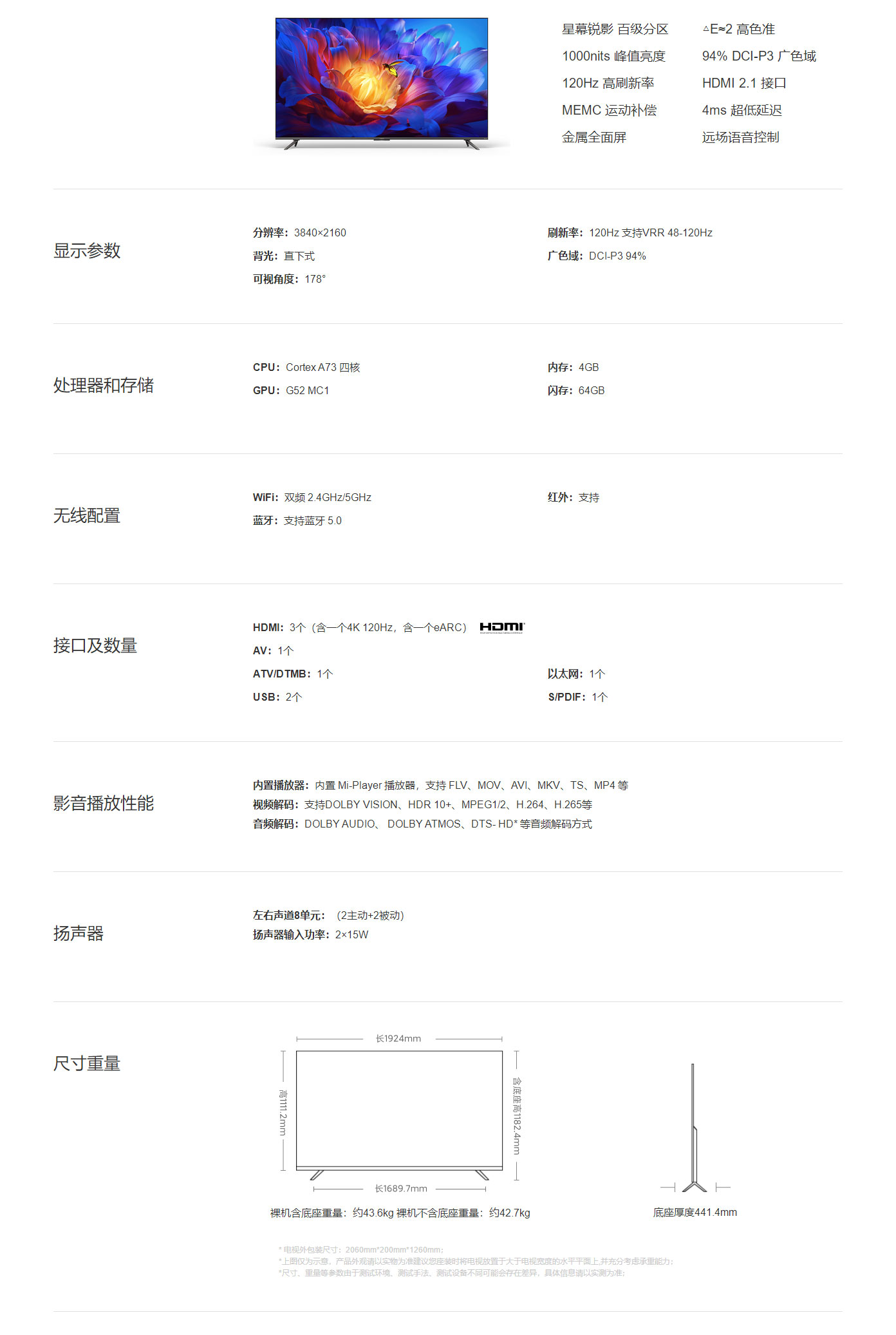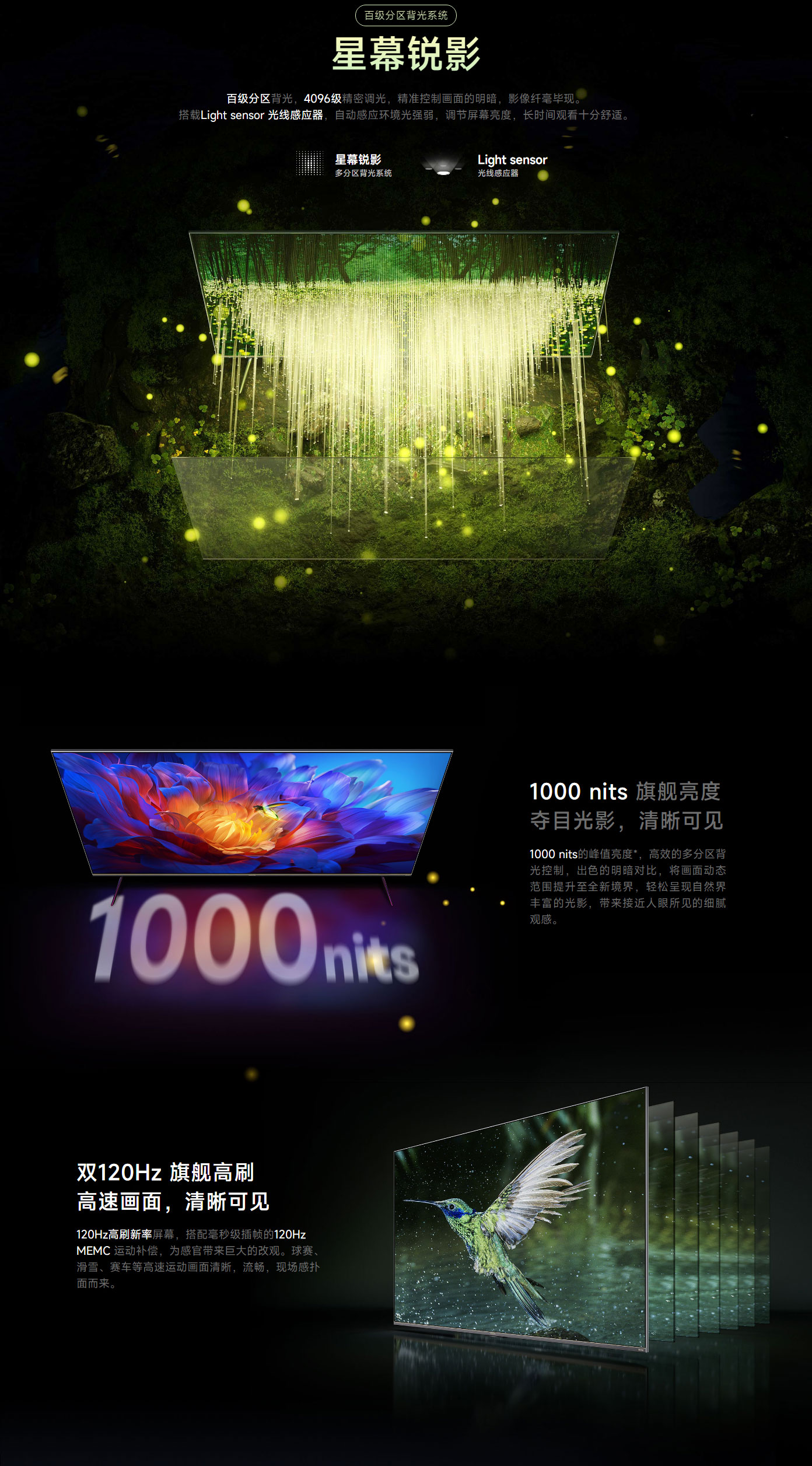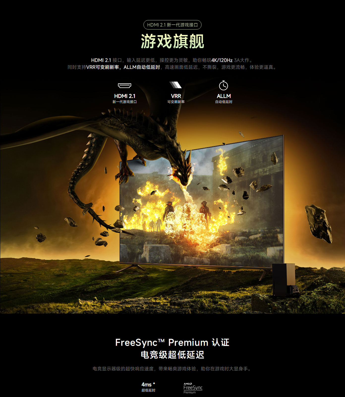 游戲電視 / 旗艦超大屏 / 120Hz高刷屏+120Hz MEMC / 4GB+64GB大內(nèi)存