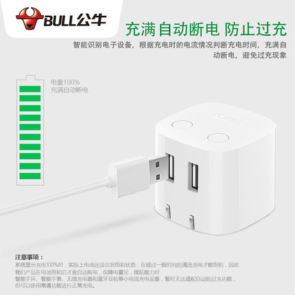 公牛自動(dòng)防過(guò)充USB充電器 (2.4A)