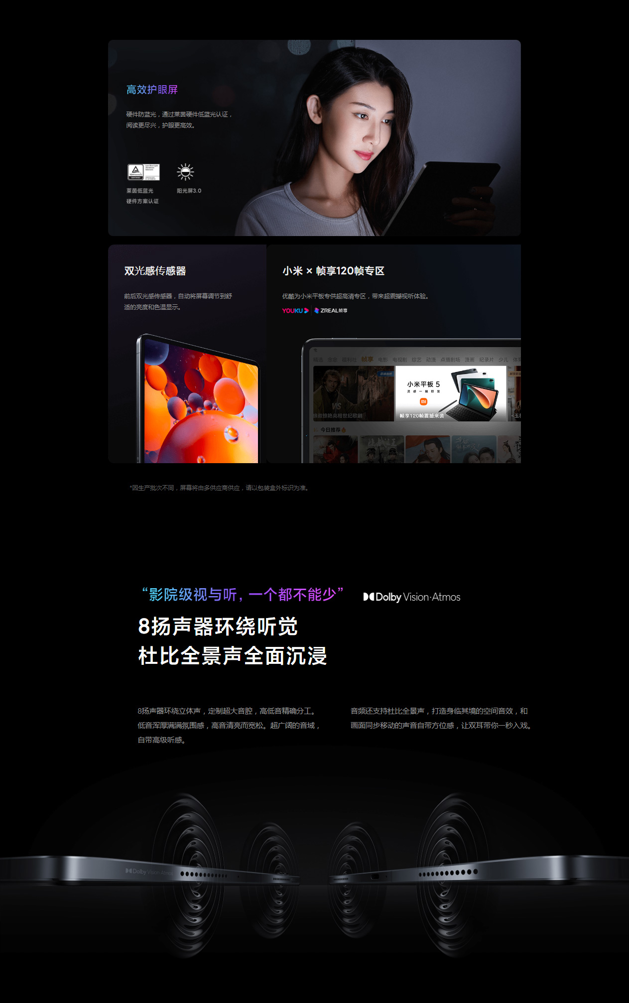 屏幕描述:2.5K,LCD,120Hz刷新率,240Hz觸控采樣率,P3色域,HDR10,8bit+2bit,1500:1,杜比視界,閱讀模式,陽光屏3.0,TrueTone真彩顯示,萊茵硬件低藍(lán)光硬件方案認(rèn)證