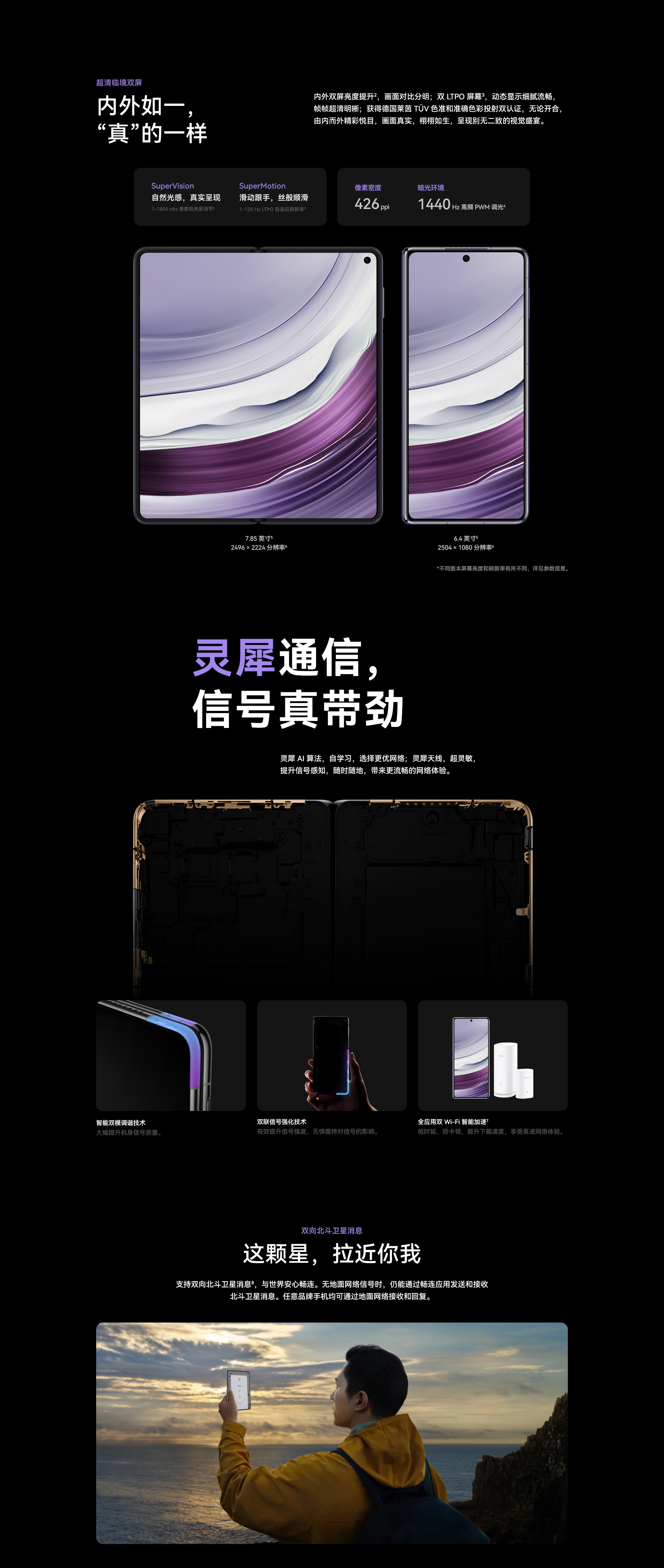 其他屏幕參數(shù):主:1440Hz高頻PWM調(diào)光,昆侖玻璃 副:1440Hz高頻PWM調(diào)光,昆侖玻璃,1-120Hz LTPO自適應(yīng)刷新率,最高300Hz觸控采樣率