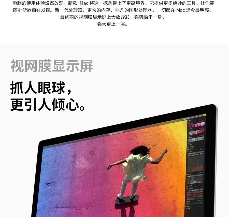 屏幕描述:視網(wǎng)膜5K顯示屏,支持十億色彩,500尼特亮度,廣色域