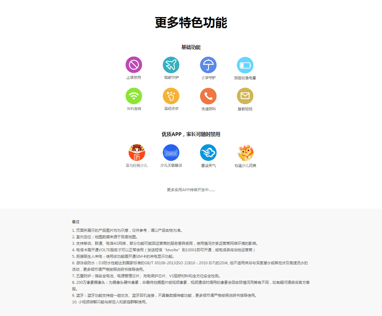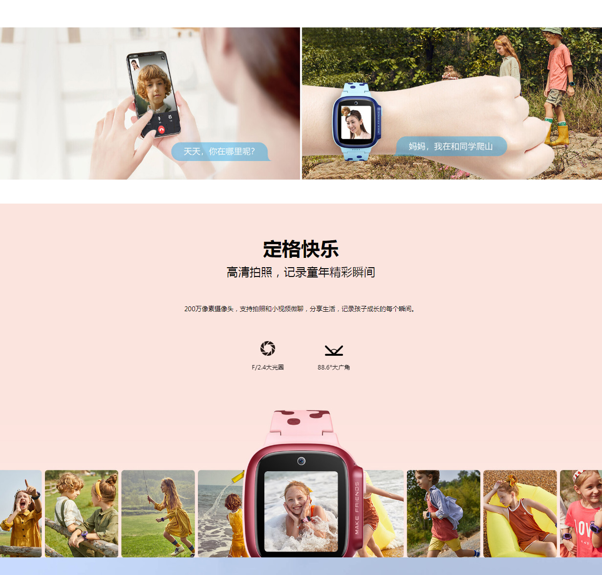 200萬攝像頭 / 視頻通話 / 游泳級(jí)防水 / 4GB大內(nèi)存