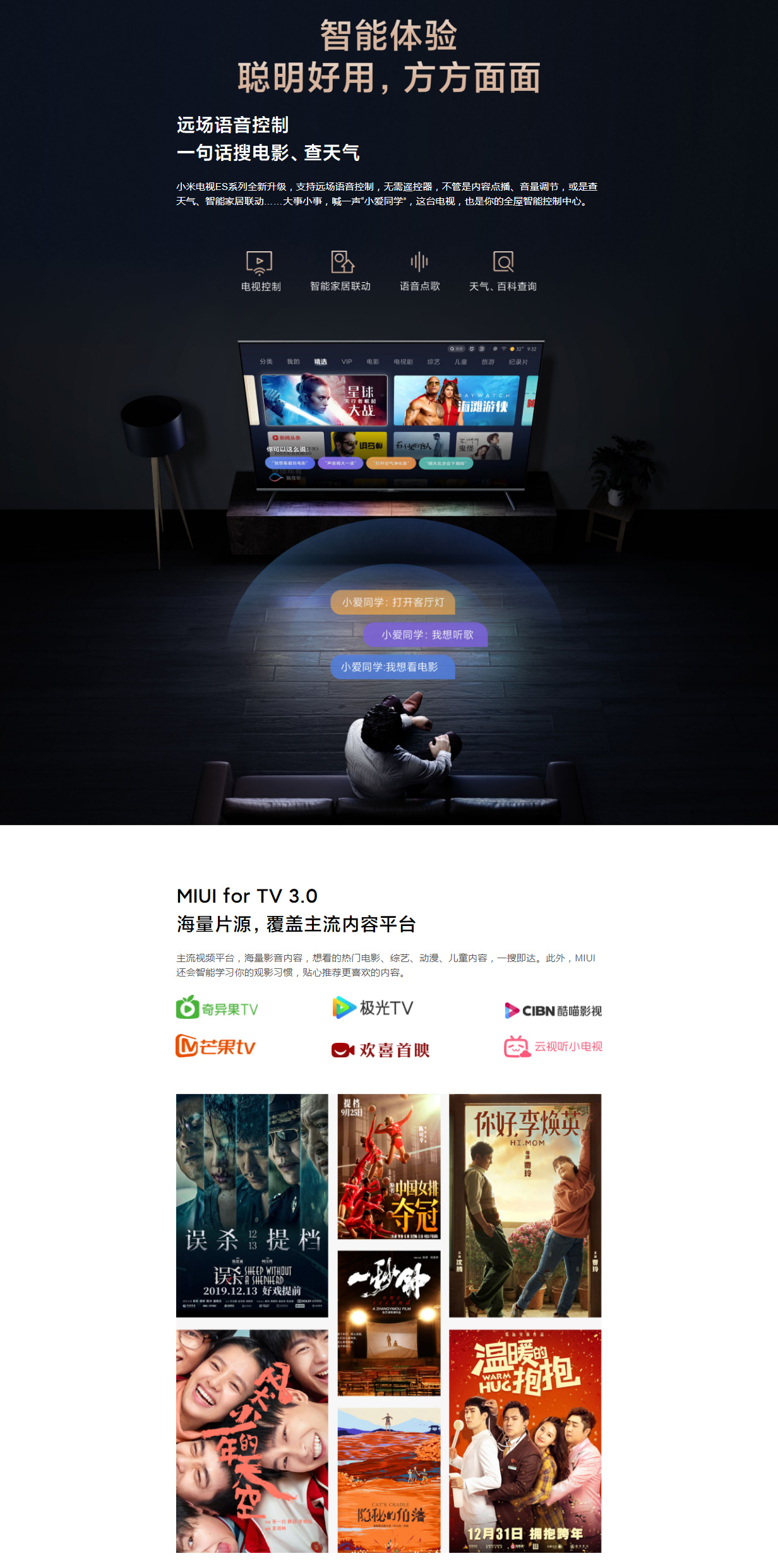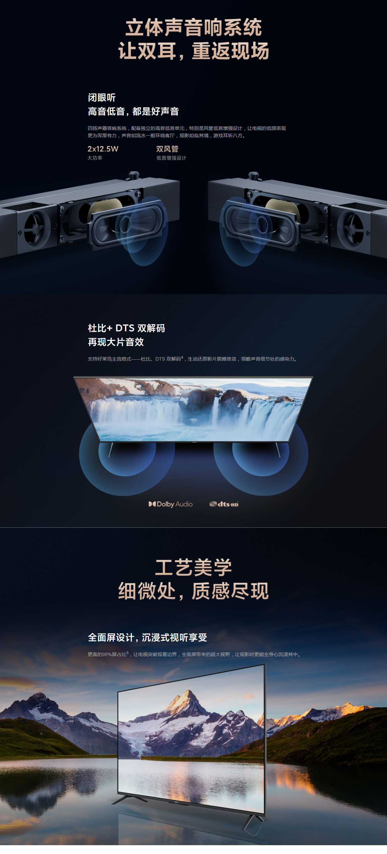 星幕銳影 / 多分區(qū)背光系統(tǒng) / 高亮度原色屏 / MEMC運(yùn)動(dòng)補(bǔ)償 / 杜比視界 / 金屬全面屏 / 遠(yuǎn)場(chǎng)語(yǔ)音