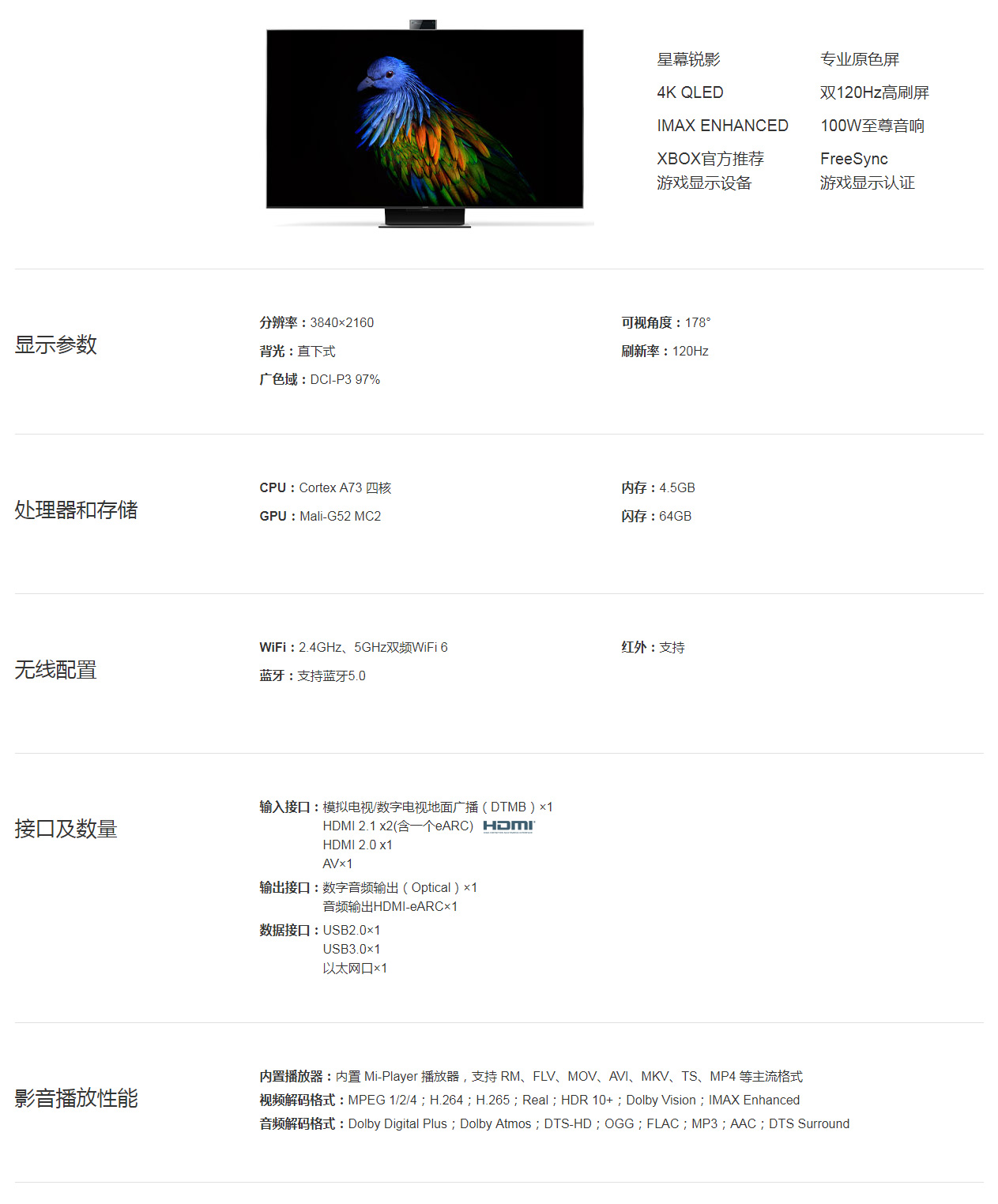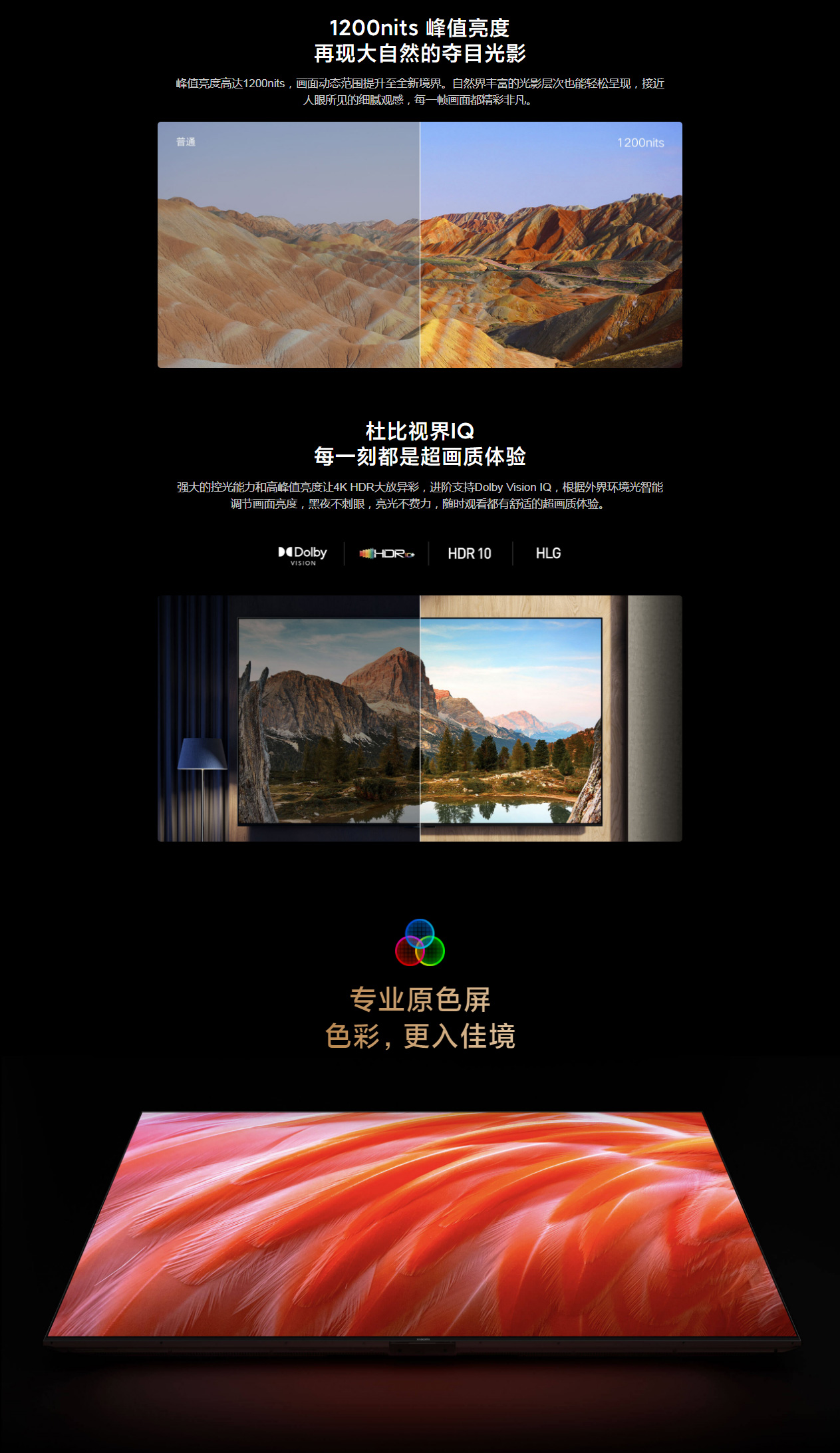 星幕銳影 / 百級分區(qū)背光系統(tǒng) / 4KQLED 雙120Hz高刷屏 / 4800萬可升降雙攝像頭