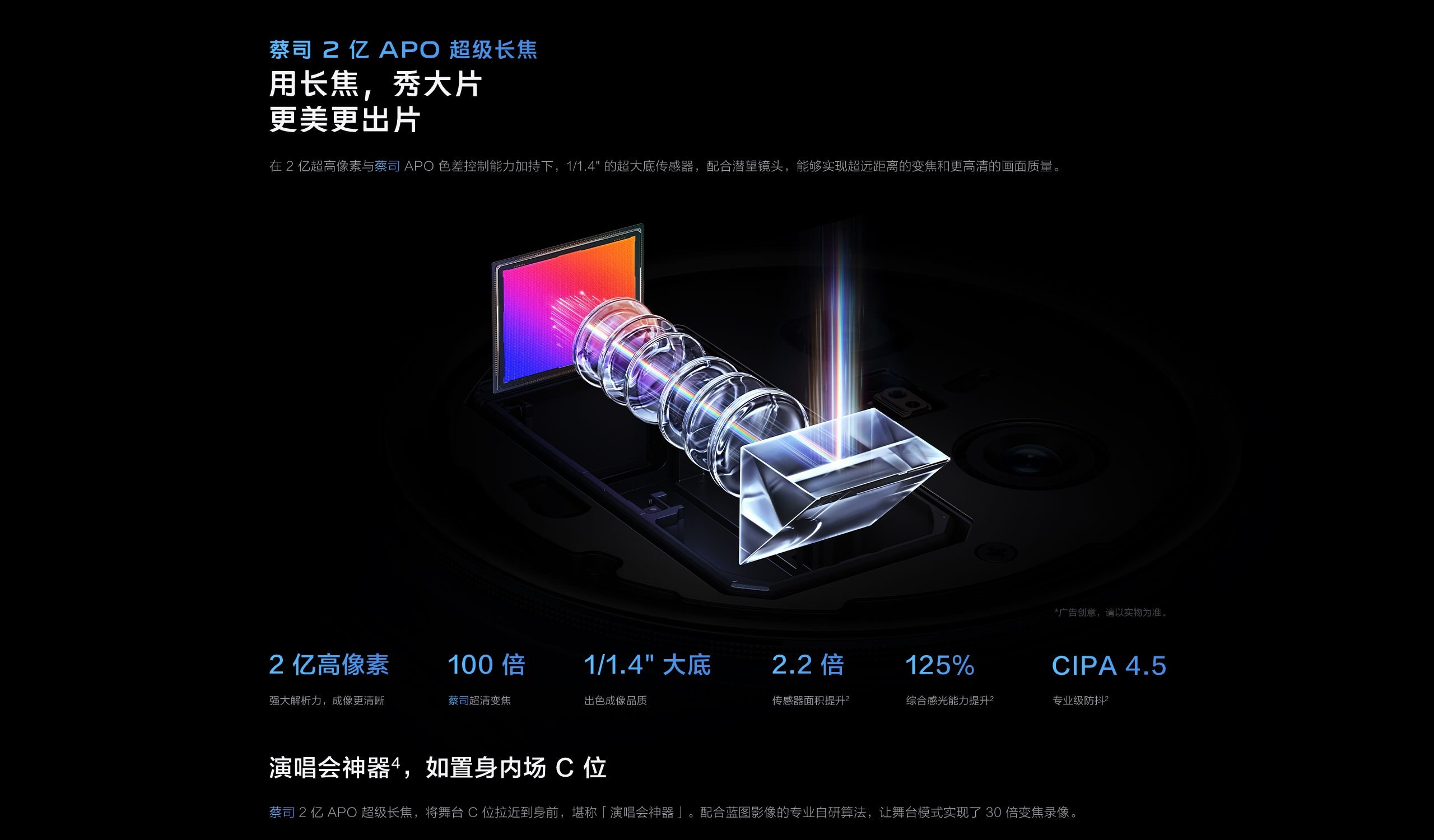 變焦倍數(shù):前置支持2倍數(shù)字變焦,后置主攝支持100倍數(shù)字變焦,后置廣角支持0.9倍數(shù)字變焦,后置潛望支持3.7倍光學變焦、100倍數(shù)字變焦