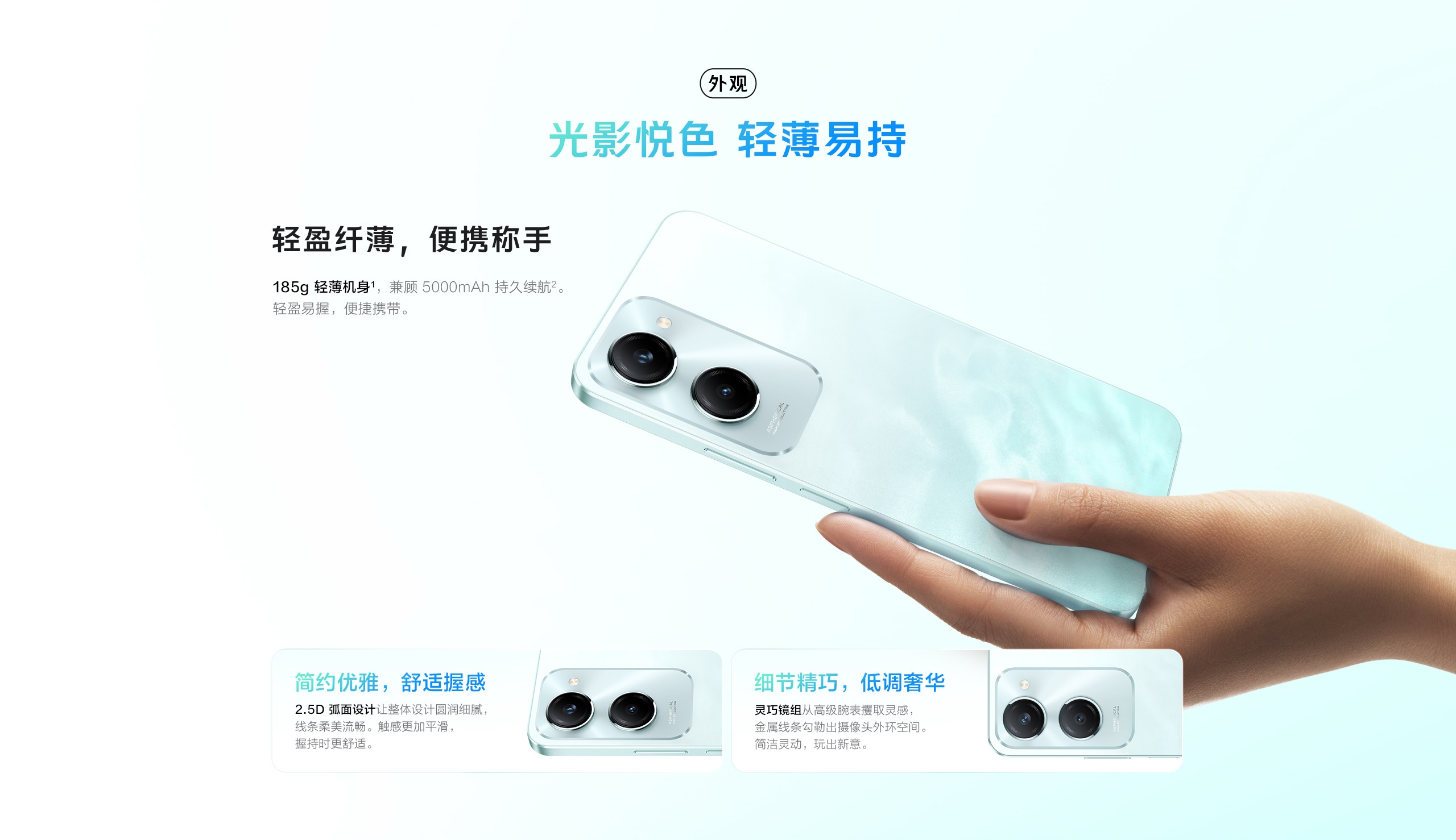 其他外觀參數(shù):163.63mm×75.58mm×8.53mm(遠(yuǎn)山青、菱光紫);163.63mm×75.58mm×8.39mm(月影黑)