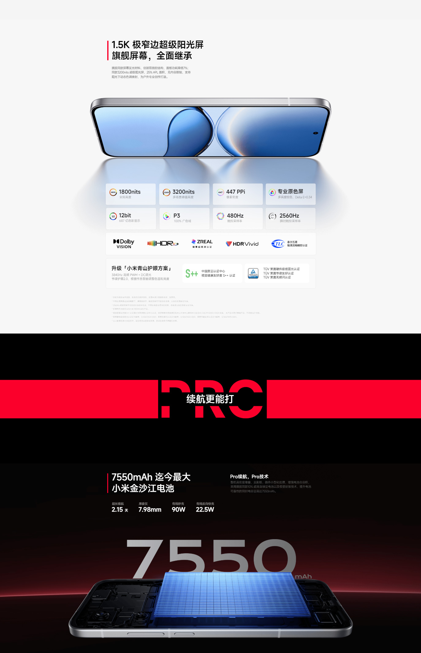 其他屏幕參數(shù):3840Hz 高頻 PWM 調(diào)光護(hù)眼,12bit 色深,DCI-P3 色域,專業(yè)原色屏,多屏同色 低藍(lán)光經(jīng)典護(hù)眼,紙質(zhì)護(hù)眼,節(jié)律護(hù)眼2.0,HDR10+,HDR Vivid,Dolby Vision 屏下光學(xué)指紋,暗光解鎖,濕手觸控 2.0,超動態(tài)顯示,TV 萊茵 三重認(rèn)證 視覺健康友好度 S++ 認(rèn)證,泰爾五星精準(zhǔn)流暢觸控認(rèn)證