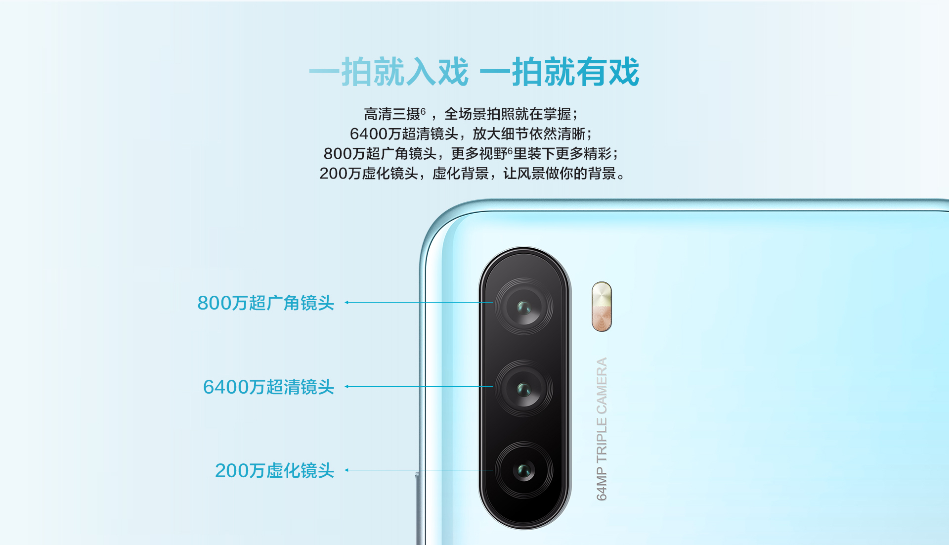 后置攝像頭:6400萬像素+800萬像素+200萬像素高清級