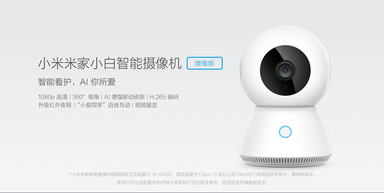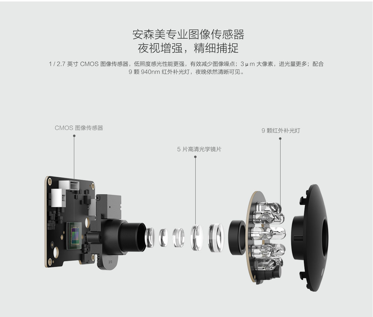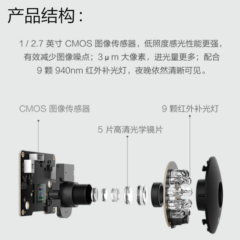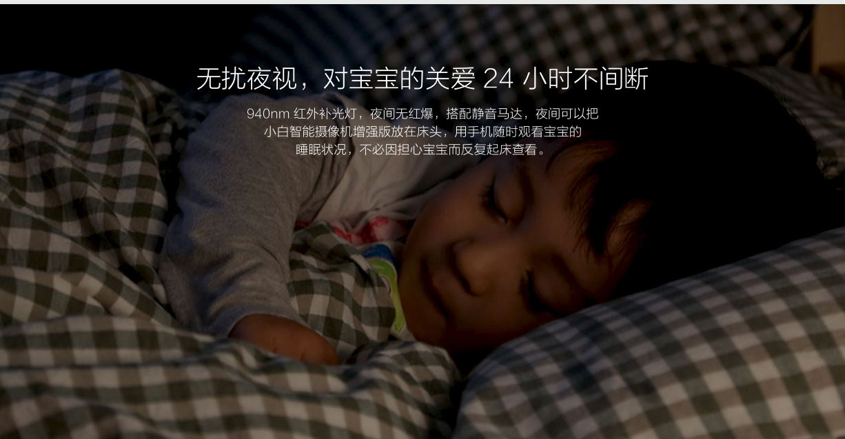 紅外夜視:小白智能攝像機擁有10顆940nm無光污染紅外補光燈,專業(yè)紅外面罩