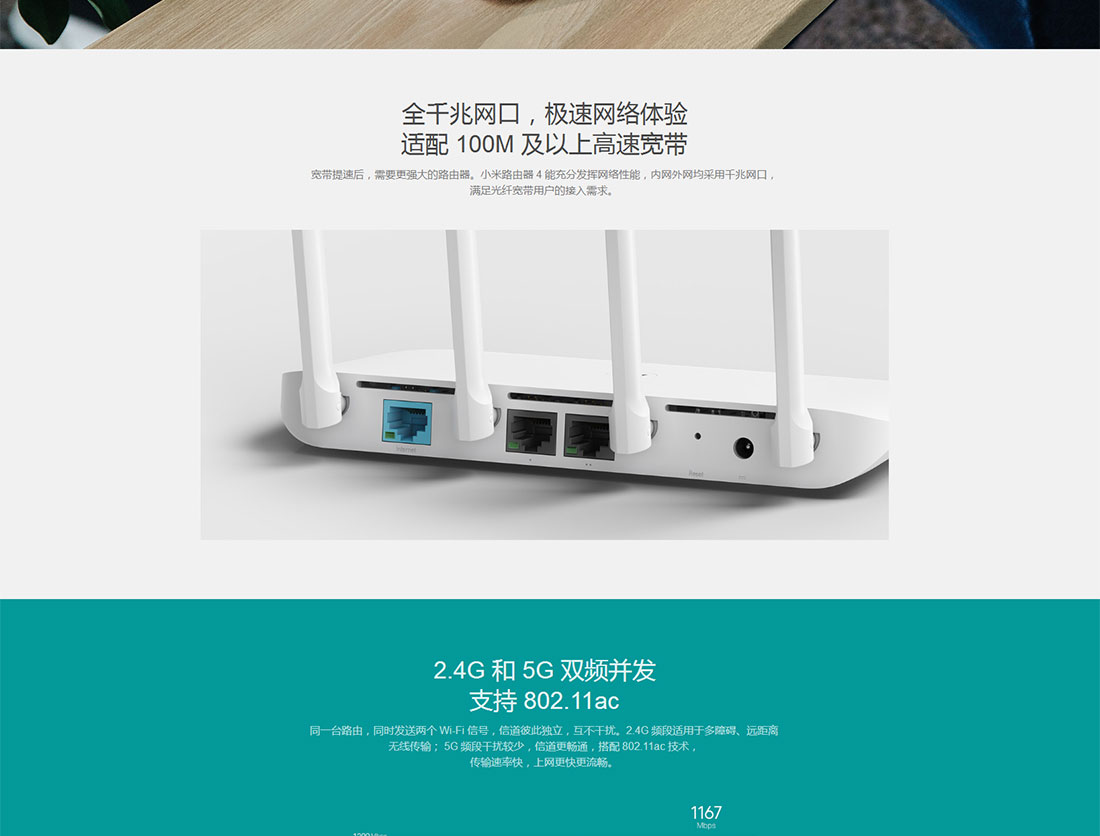 產(chǎn)品天線:外置全向高增益天線 4根(2.4G 最大增益 5dBi 2根 5G 最大增益 6dBi 2 根)