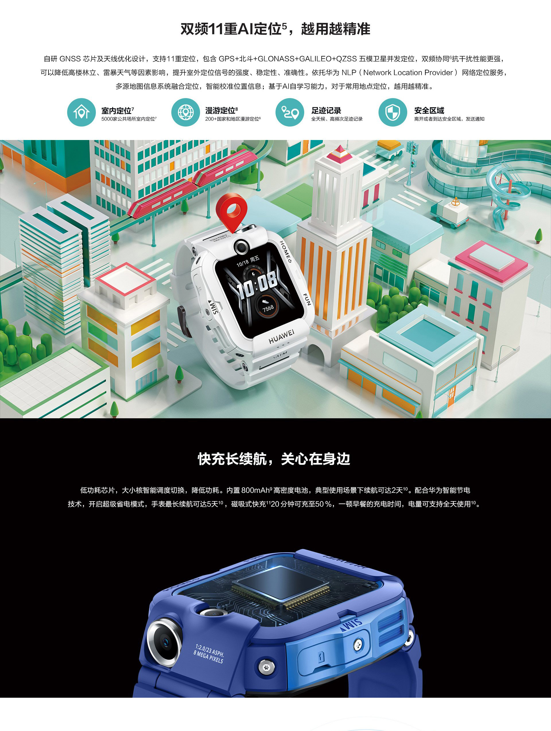 理論工作時(shí)間:典型使用場(chǎng)景下,2天一充;超級(jí)省電模式下(僅開(kāi)啟定位和通話功能),5天一充備注:超級(jí)省電模式是指手表僅開(kāi)啟通話和定位功能,iOS版本智能關(guān)懷APP暫不支持;典型使用場(chǎng)景是指用戶通話時(shí)長(zhǎng)和使用次數(shù)等在正常使用場(chǎng)景下;通過(guò)OTA升級(jí)支持上述續(xù)航時(shí)長(zhǎng),同時(shí)需使用出廠默認(rèn)配置,開(kāi)啟上課禁用及定時(shí)開(kāi)關(guān)機(jī)功能。續(xù)航數(shù)據(jù)來(lái)自華為實(shí)驗(yàn)室,實(shí)際續(xù)航時(shí)長(zhǎng)與使用習(xí)慣、網(wǎng)絡(luò)環(huán)境、使用頻率相關(guān),不同用戶有所不同。