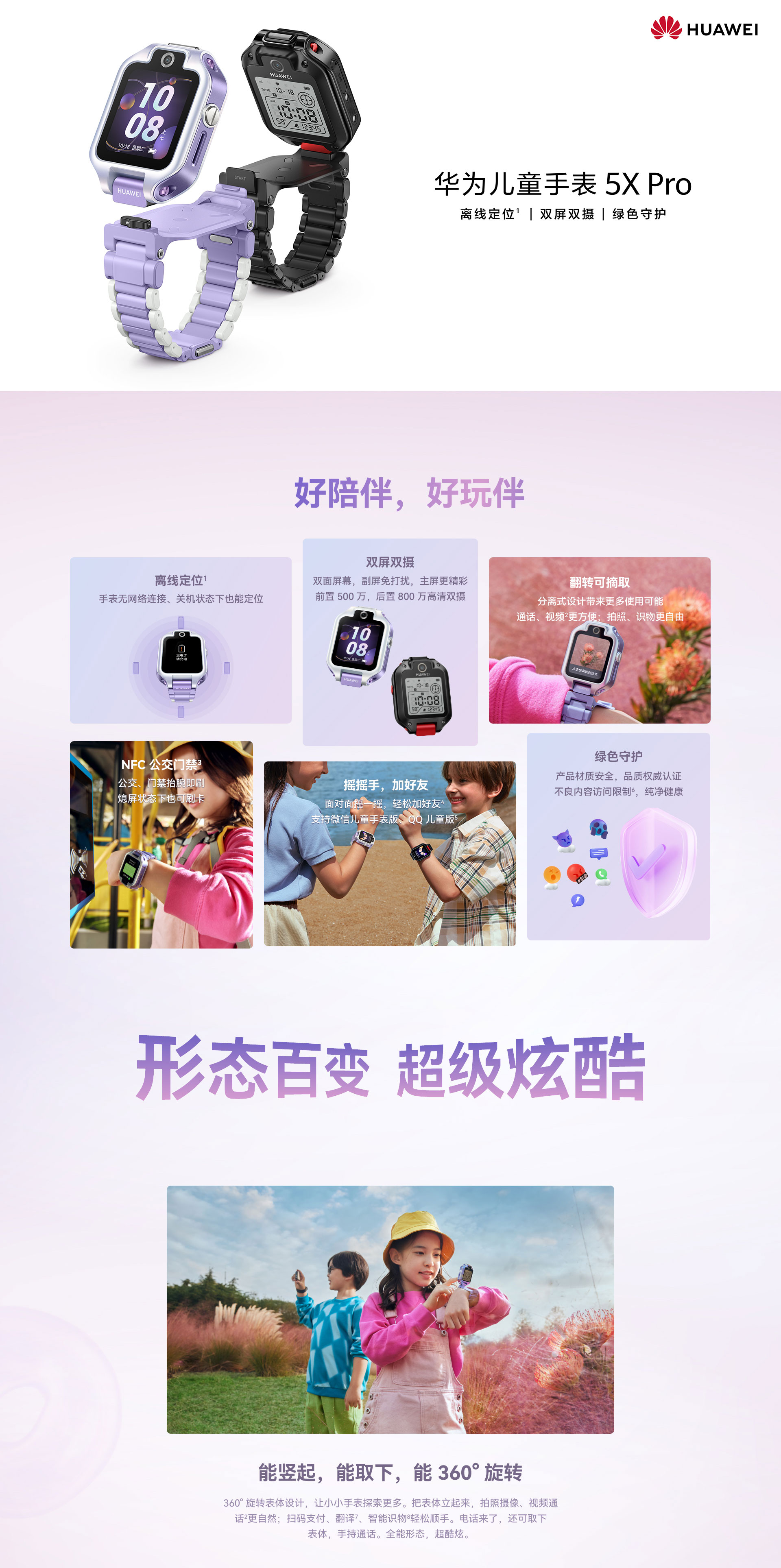 離線定位 / 雙屏雙攝 / 綠色守護(hù) / 翻轉(zhuǎn)可摘取 / NFC公交門禁 / 游泳級防水