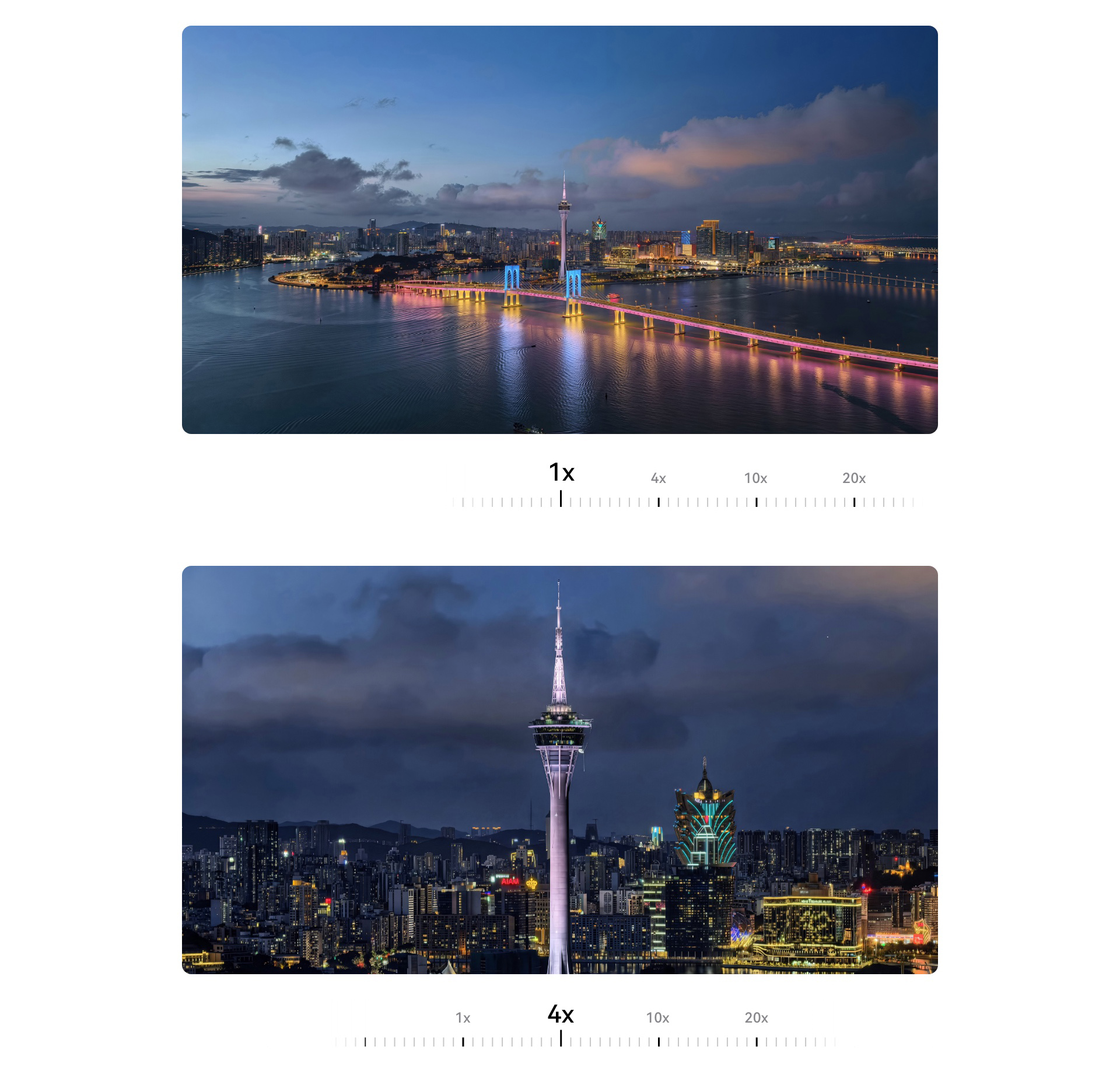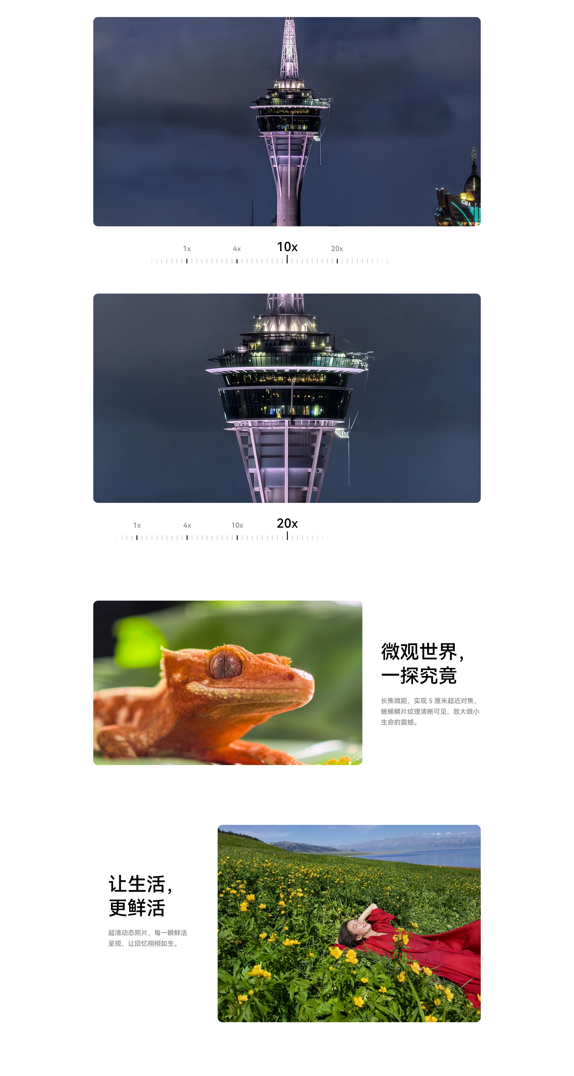 變焦倍數(shù):后置攝像頭:支持4倍光學(xué)變焦(4倍變焦為近似值,鏡頭焦段分別為13 mm,22.5mm,92.5 mm)、100倍數(shù)字變焦