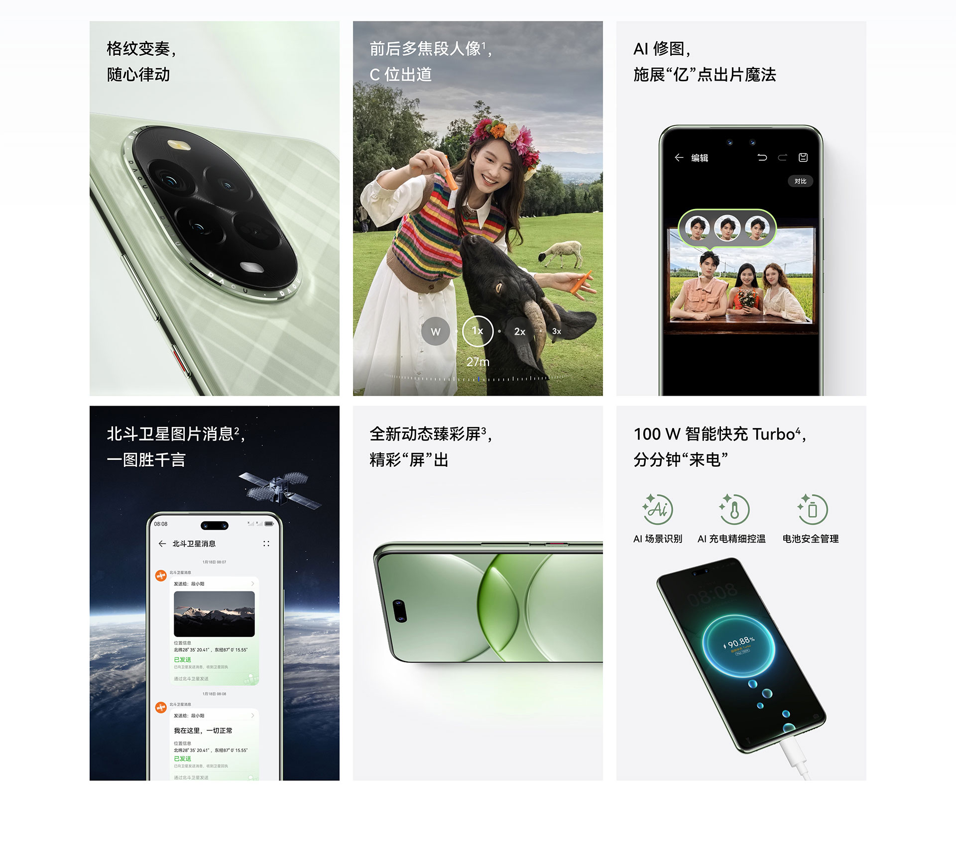 包裝清單:手機(內(nèi)置電池) x1 華為SuperCharge充電器 100W x1 USB Type-C 數(shù)據(jù)線 x1 保護膜(出廠已貼在手機上) x1 快速指南 x1 取卡針 x1 TPU保護殼 x1 會員權益禮包 x1