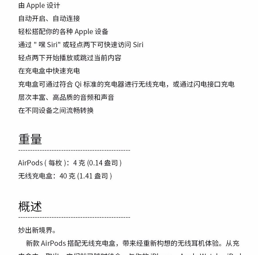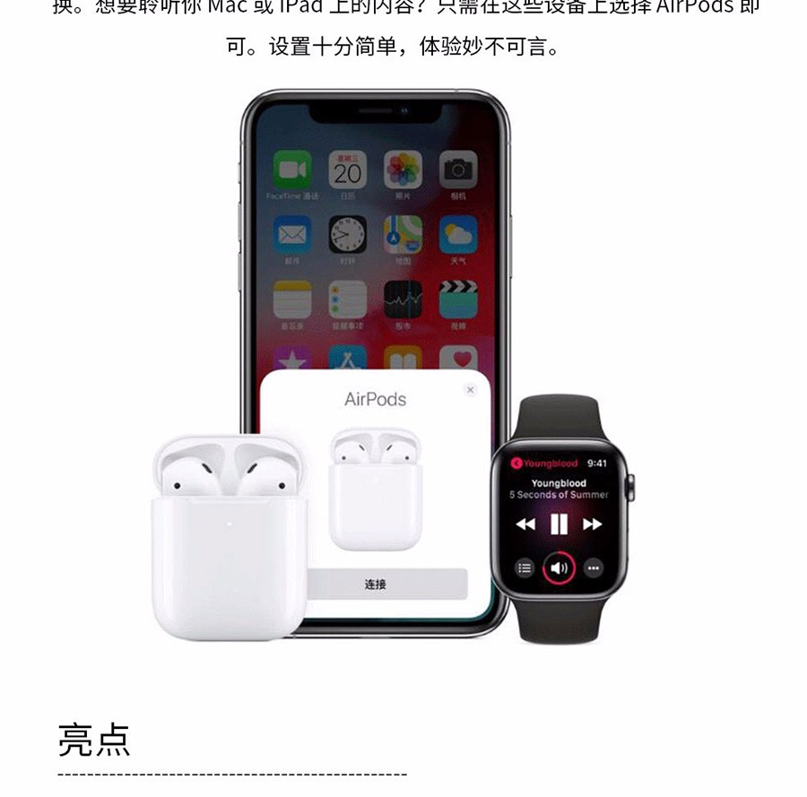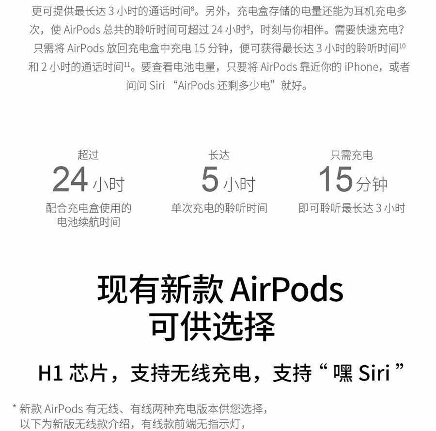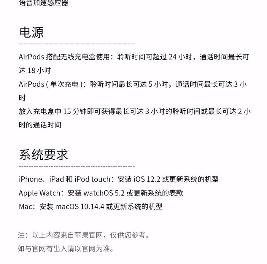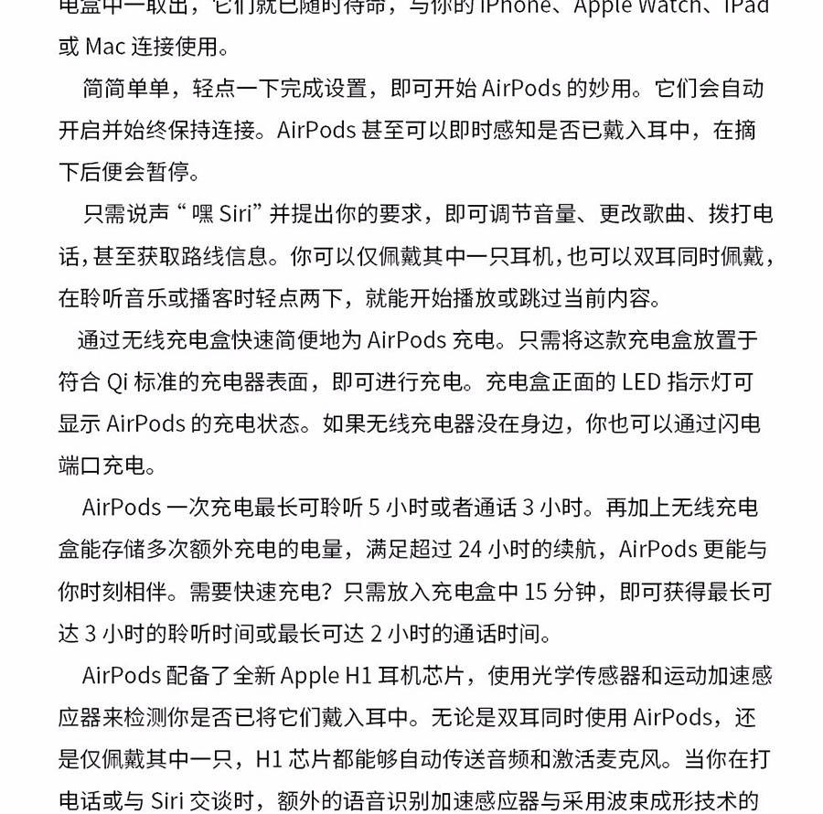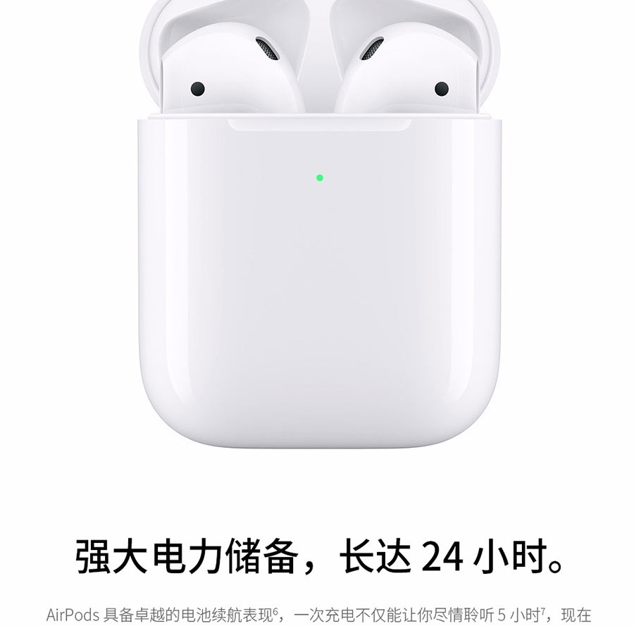 續(xù)航時間:AirPods搭配無線充電盒使用:聆聽時間可超過24小時3,通話時間最長可達18小時