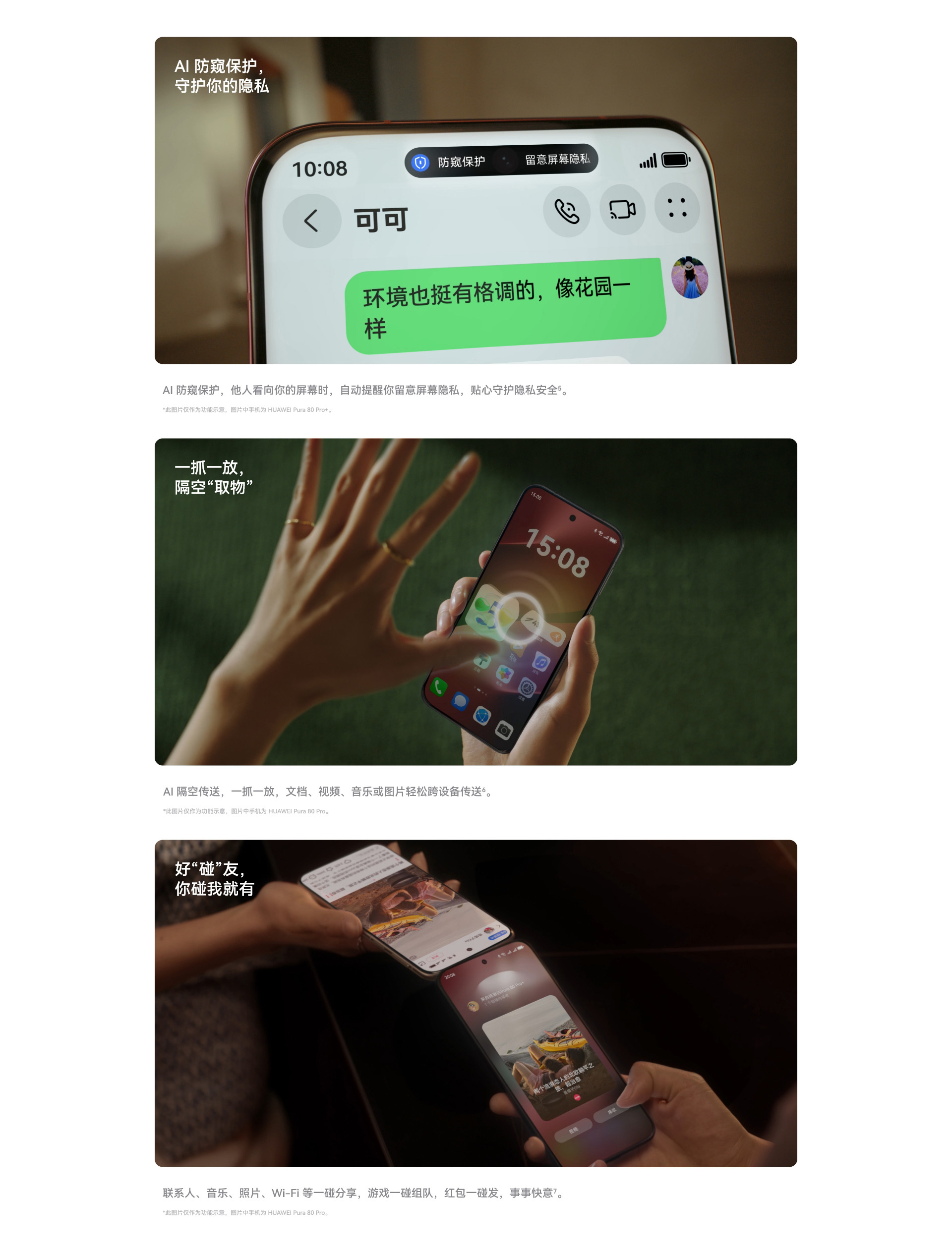 后置拍照功能:后置攝像頭:最大可支持8192 × 6144像素,個性色卡、AI 動態(tài)照片、視頻 HDR Vivid、閃拍、高畫質(zhì)模式、夜景模式、超級微距、微距視頻、微距畫中畫、長焦畫中畫、高像素模式、延時攝影、超大廣角、大光圈虛化、人像模式、專業(yè)模式、慢動作、全景模式、流光快門、智能濾鏡、水印、AI 攝影大師、笑臉抓拍、聲控拍照、定時拍照、連拍