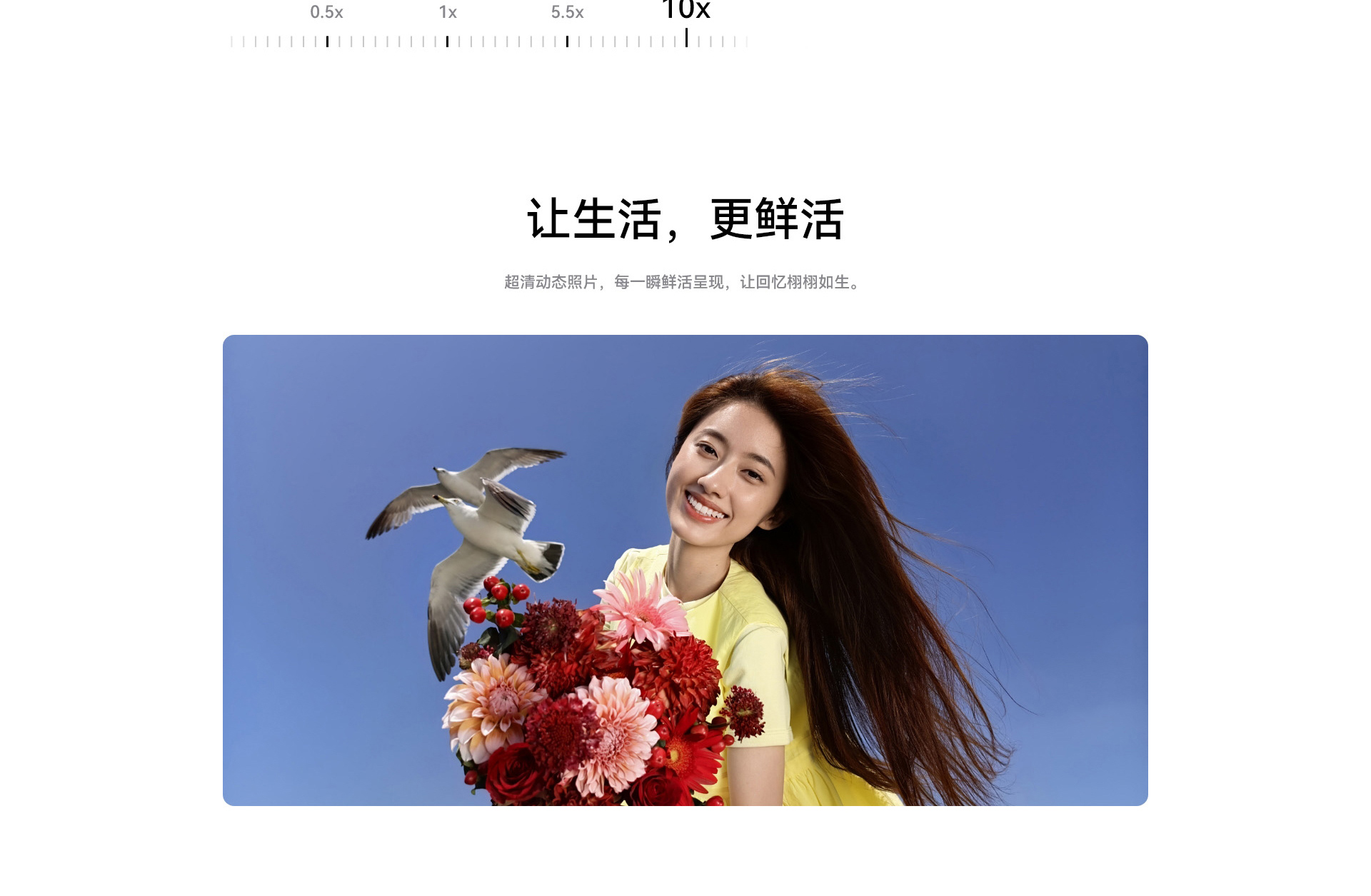 變焦倍數(shù):后置攝像頭:支持 5.5 倍光學變焦(5.5 倍變焦為近似值,鏡頭焦段分別為 13 mm,24 mm,125 mm)、50 倍數(shù)字變焦