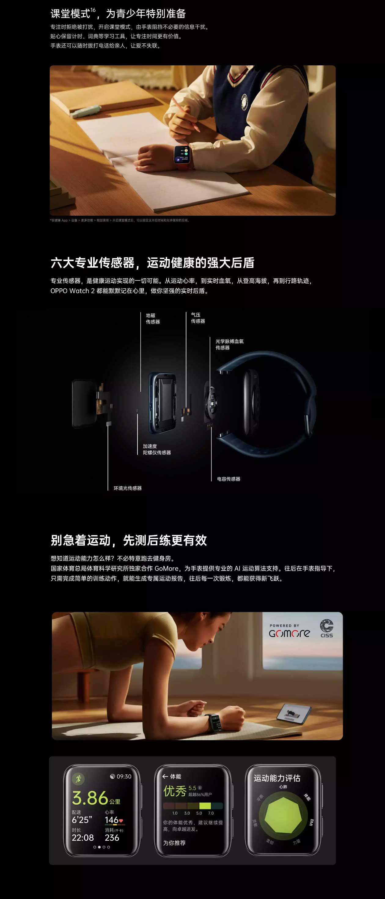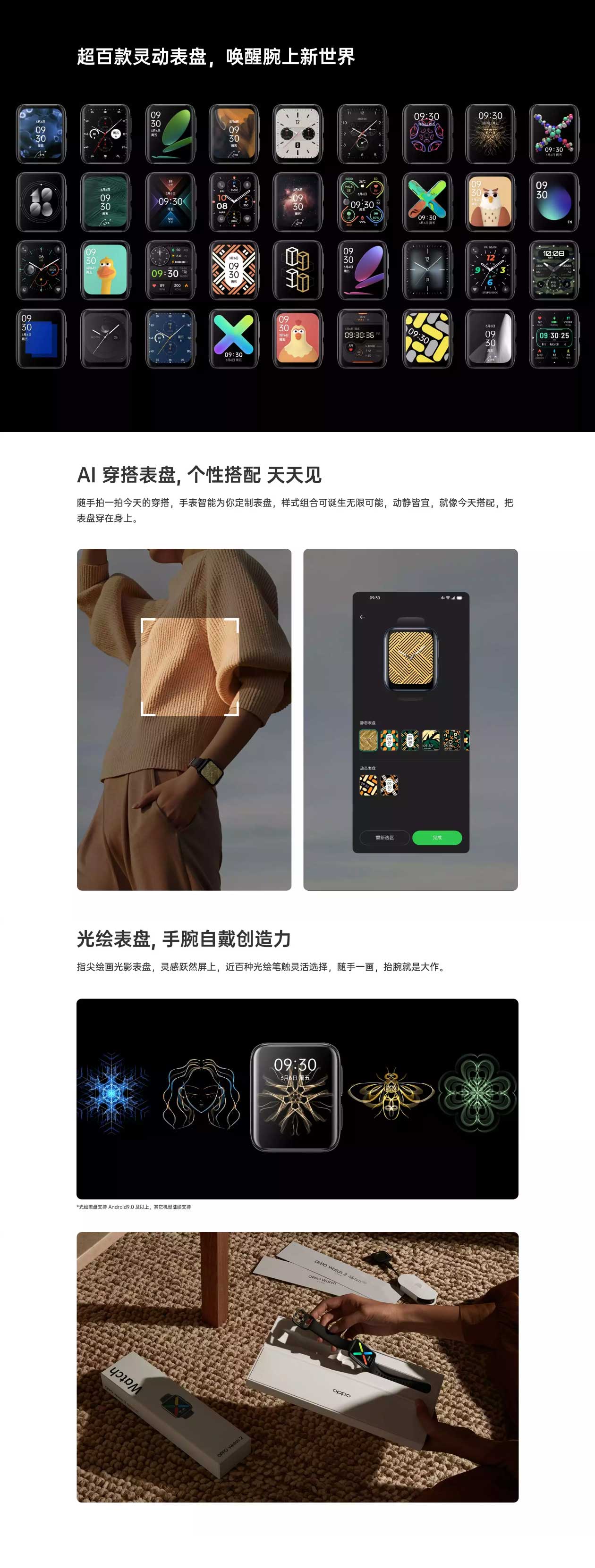 其它功能:100+中運動模式,AI穿搭表盤,光繪表盤,課堂模式,家人關(guān)愛模式,支持下載第三方APP