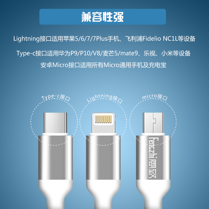 風(fēng)致 一拖三數(shù)據(jù)線 /蘋(píng)果/安卓/Type-C (1.2m)