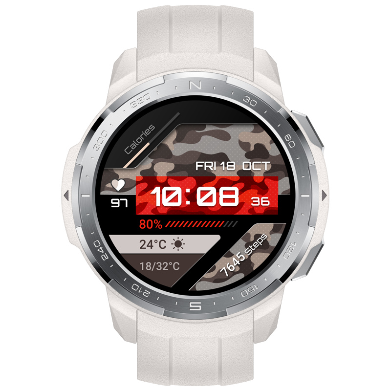 45mm:銀色不銹鋼表殼+白運(yùn)動(dòng)表帶